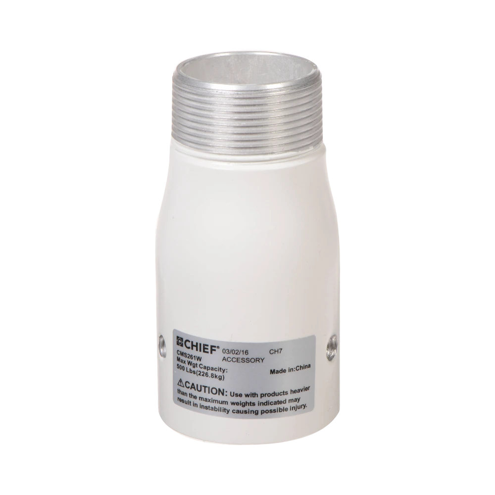 The Chief CMS261W is a column cut-off adapter designed to restore factory-style threads after trimming a Chief extension column to a custom length. It adds two inches of height to the finished column, ensuring your mount aligns perfectly with your installation needs. This adapter is essential for installers who need to adjust column length without compromising strength or compatibility, making it ideal for conference rooms, classrooms, and digital signage setups.