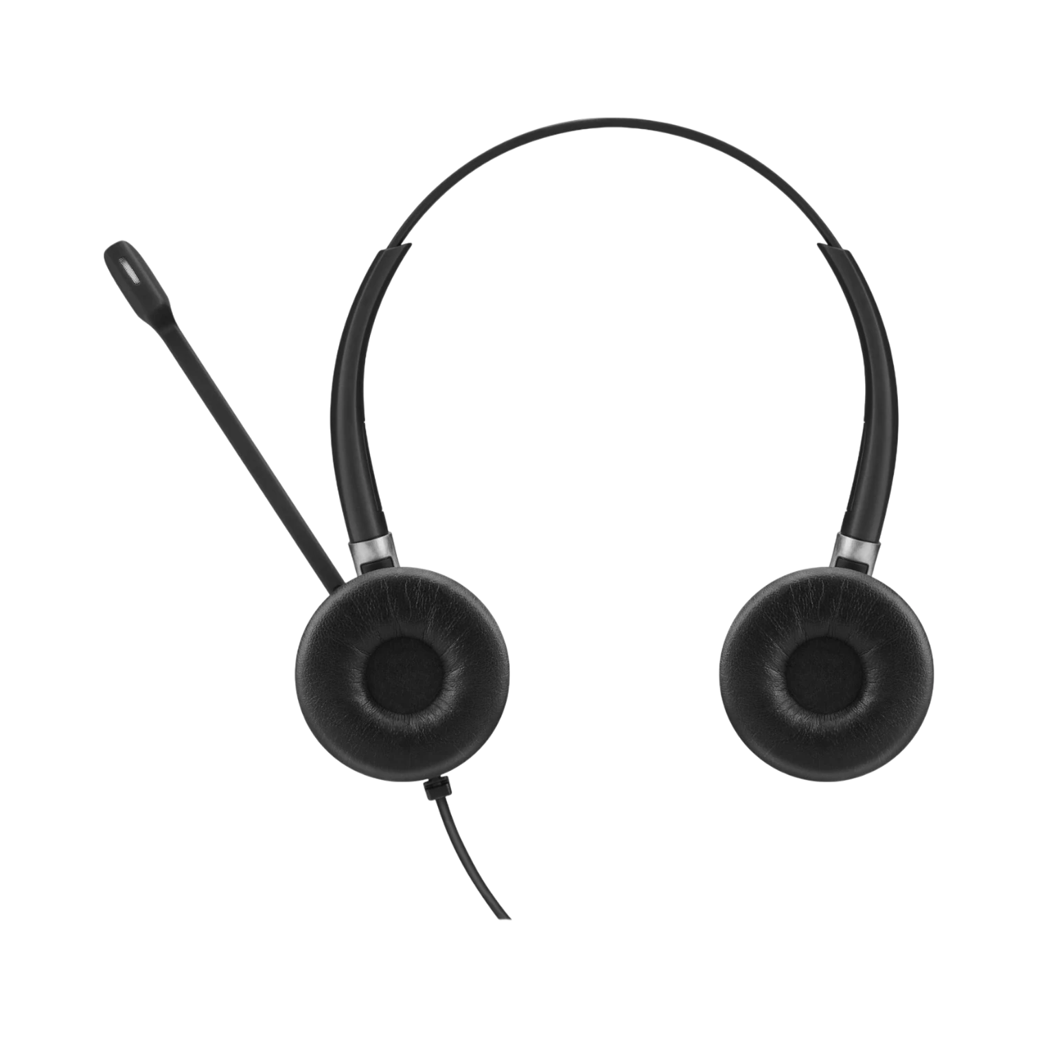 Designed for all-day use, the headset combines soft leatherette ear cushions with a balanced headband to minimize discomfort and fatigue. The robust materials used in its construction provide a solid feel and long-lasting durability, ensuring it withstands the demands of daily professional use.