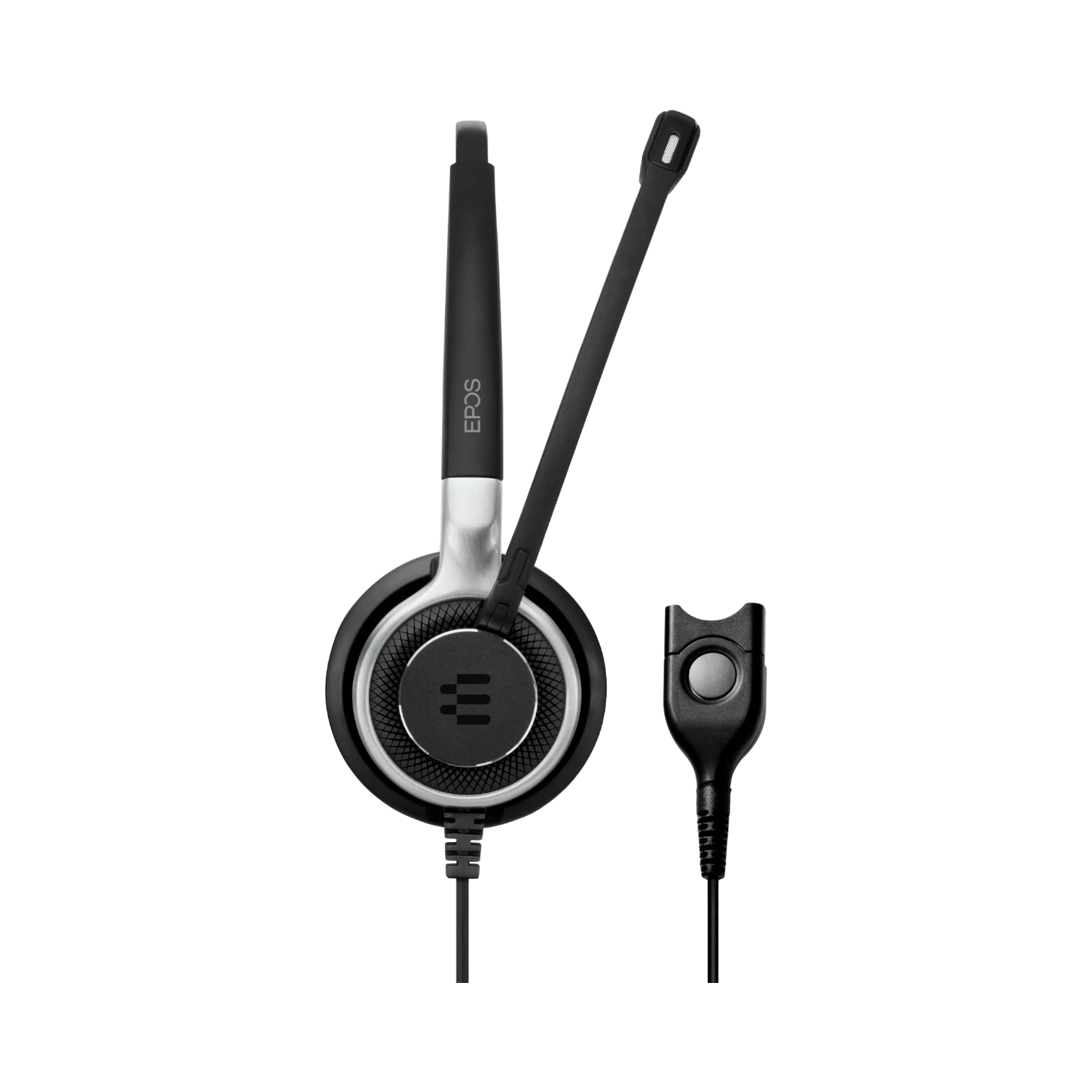 The EPOS 1000555 is a wired on-ear headset designed for professionals who require clear and reliable communication throughout their workday. It features an Easy Disconnect plug that allows seamless switching between shared desks or handsets without interrupting calls. The headset delivers sound to both ears, helping users maintain focus during long meetings and complex discussions.