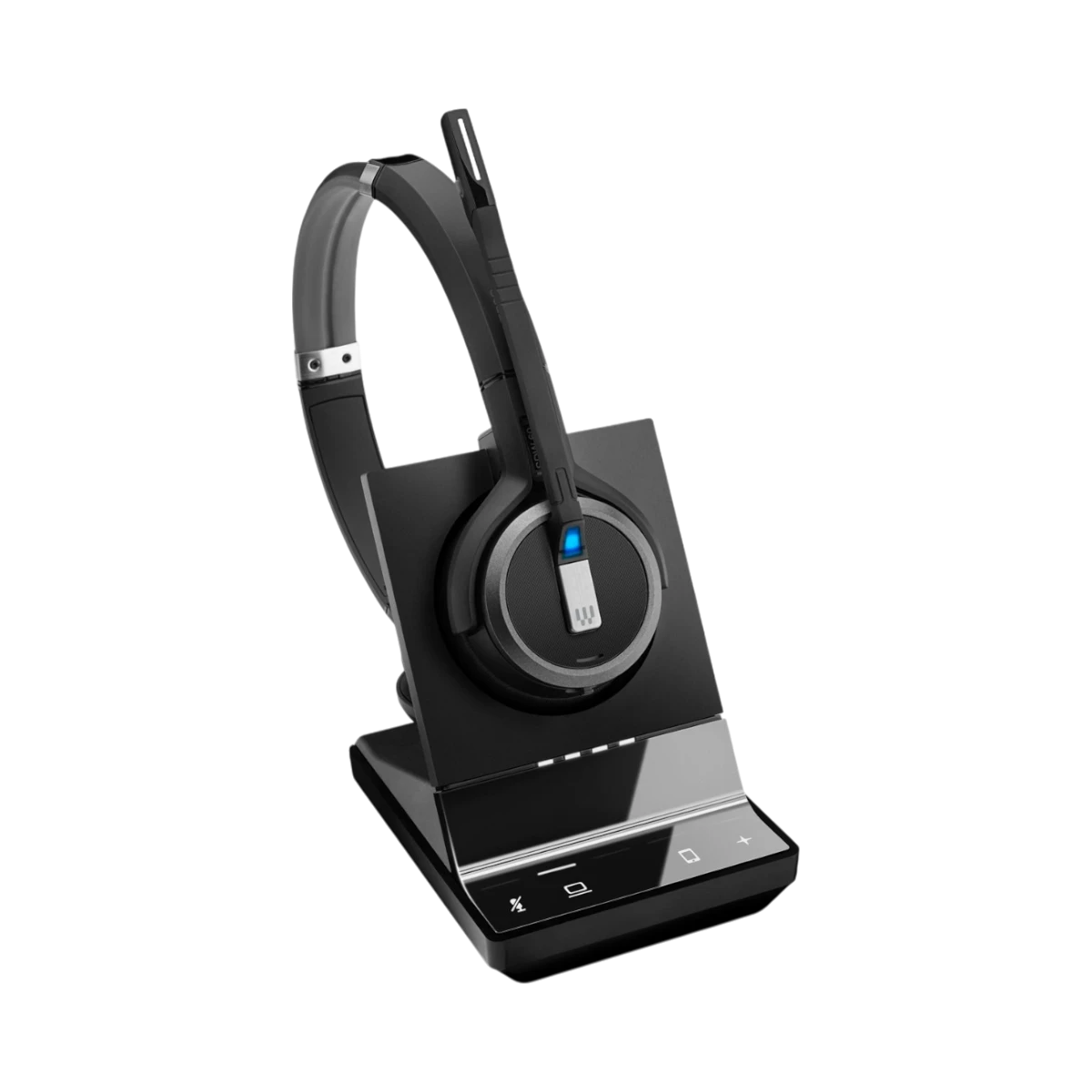 This headset is designed to work seamlessly with both desk phones and softphone applications, making it a versatile choice for hybrid communication setups. Its certification for Skype for Business and other leading unified communications platforms ensures smooth integration without compatibility issues. The DECT wireless connection offers a stable link free from Wi-Fi interference, ideal for busy office environments.