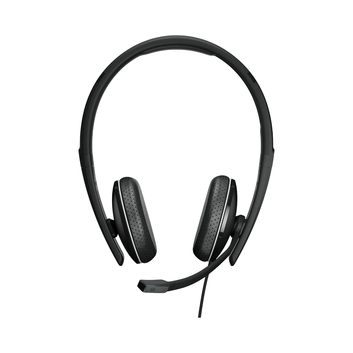 The EPOS 1000916 is a wired stereo headset designed to provide clear and consistent audio for professional and personal use. It connects via USB or a 3.5 mm jack, making it compatible with laptops, tablets, and smartphones. The headset features stereo speakers optimized for speech clarity and comfortable leatherette ear pads that support extended wear during long calls or training sessions.