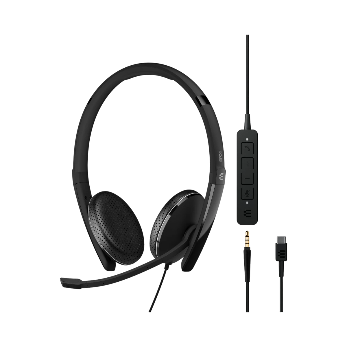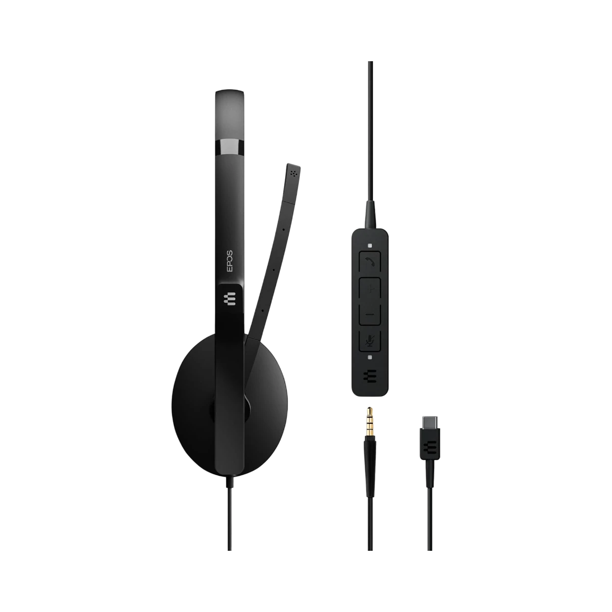 The EPOS 1000920 is an on-ear wired headset designed to provide professionals with clear audio and reliable communication throughout the workday. It delivers stereo sound to both ears for focused listening, while its noise-reducing microphone ensures your voice remains crisp even in busy environments. Weighing just 142 grams, this headset offers comfort for extended use and folds flat for easy storage and portability.