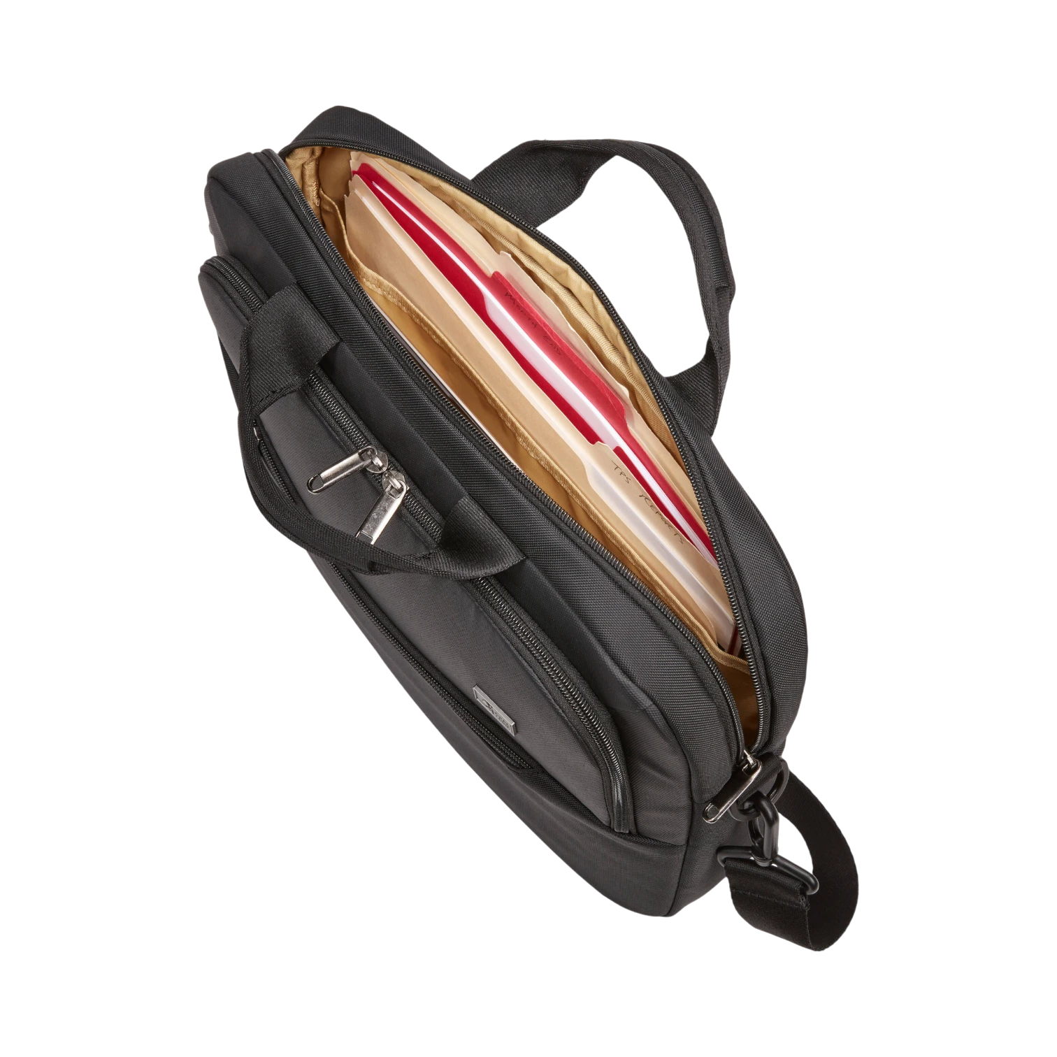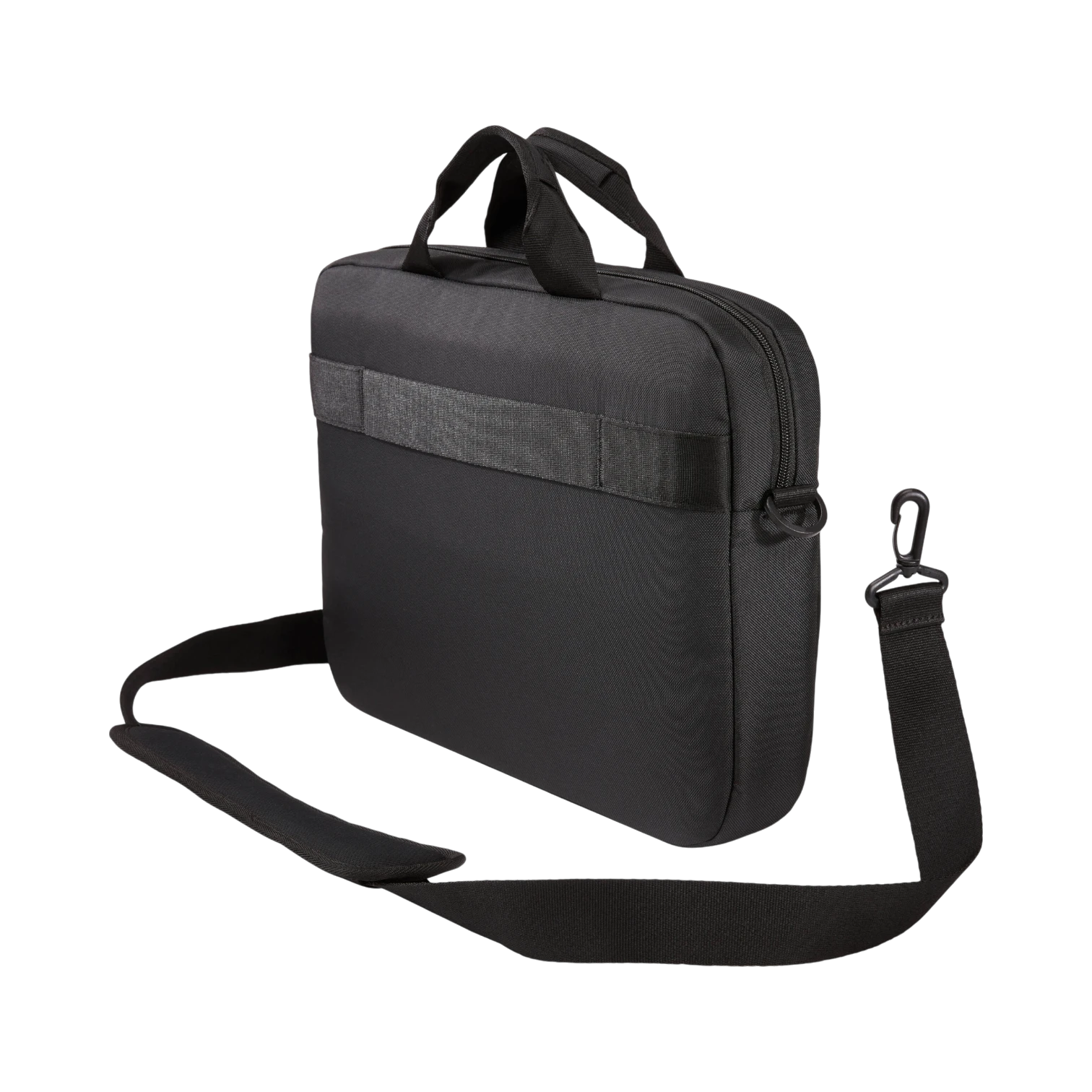 - Luggage pass-through strap that attaches the attaché securely to rolling suitcases, simplifying travel and reducing the need to carry the bag separately