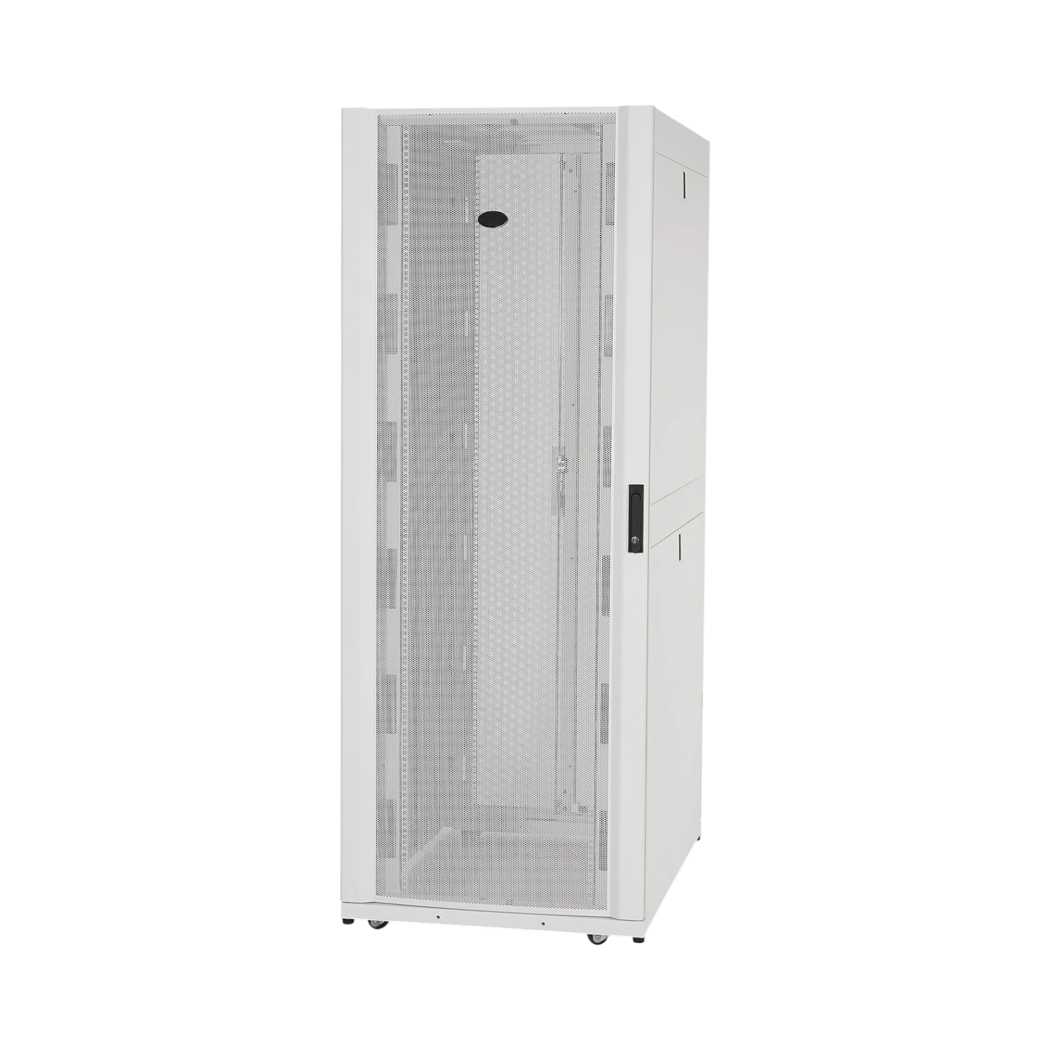 - White finish enhances visibility inside the cabinet and complements modern data center aesthetics