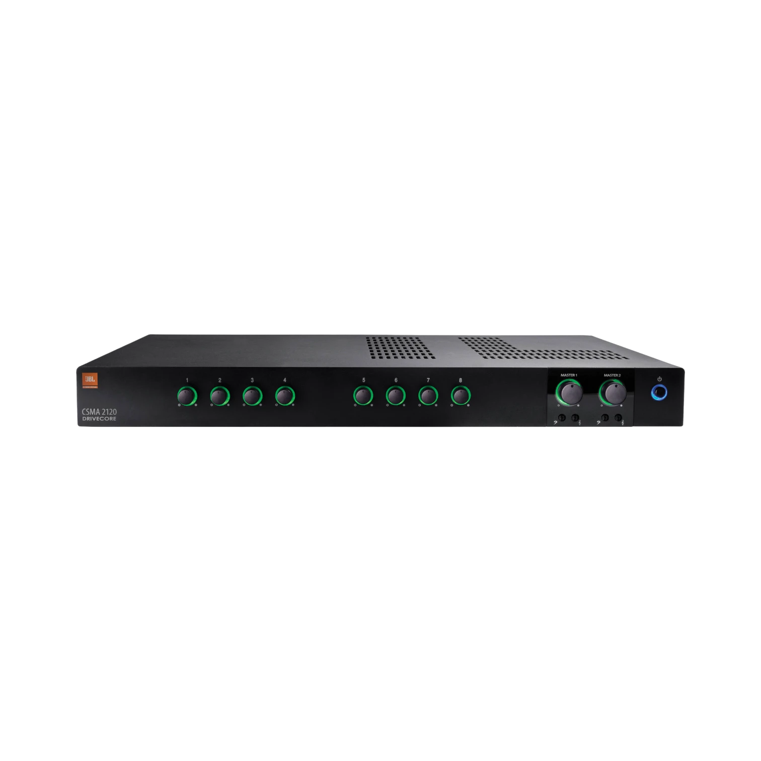 The JBL CSMA2120 is a commercial mixer amplifier designed to deliver reliable sound reinforcement in a variety of professional settings. It provides up to 120 watts of power distributed across two output channels, supporting 70 volt, 100 volt, and standard 4 or 8 ohm speaker systems without the need for external transformers. This flexibility makes it suitable for venues like cafés, retail spaces, and conference rooms that require clear audio for music and announcements.