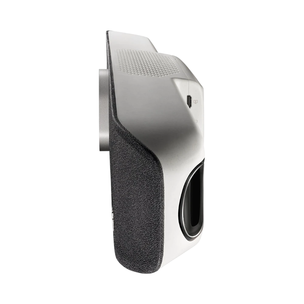 - A four-microphone array captures voices clearly from up to 25 feet away while NoiseBlockAI and Acoustic Fence technologies minimize background noise and side conversations.