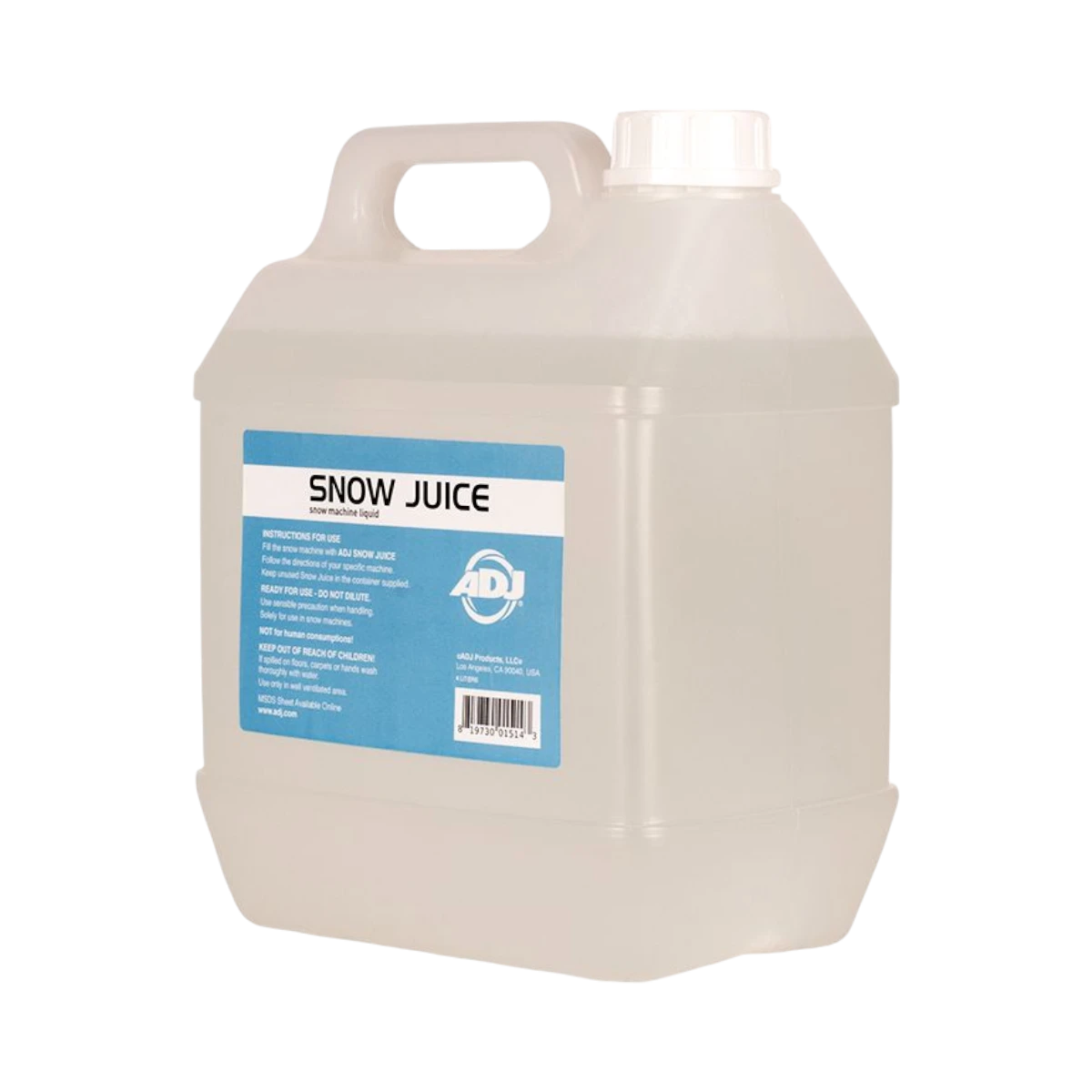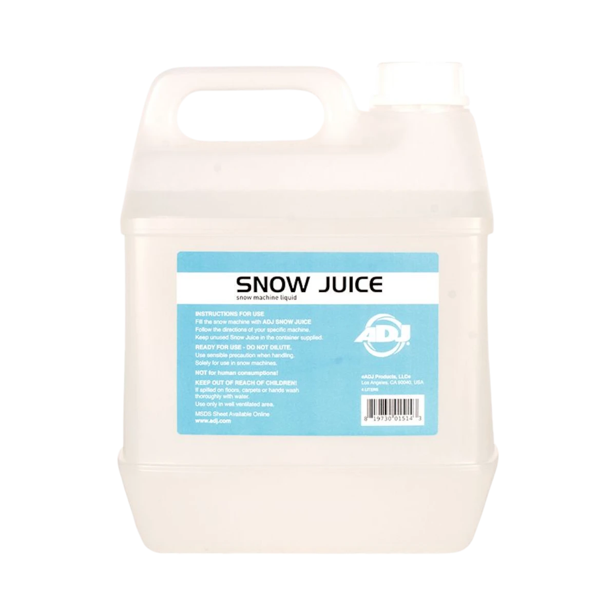 The ADJ SNOW GAL is a one gallon bottle of snow fluid designed to create realistic snowfall effects for performances and events. This fluid produces larger and denser snow bubbles that drift gently through the air before settling as a light foam, closely mimicking natural snow. It is specially formulated for use with ADJ snow machines, ensuring consistent and reliable output for a variety of settings such as holiday concerts, themed parties, retail displays, and photography sessions.