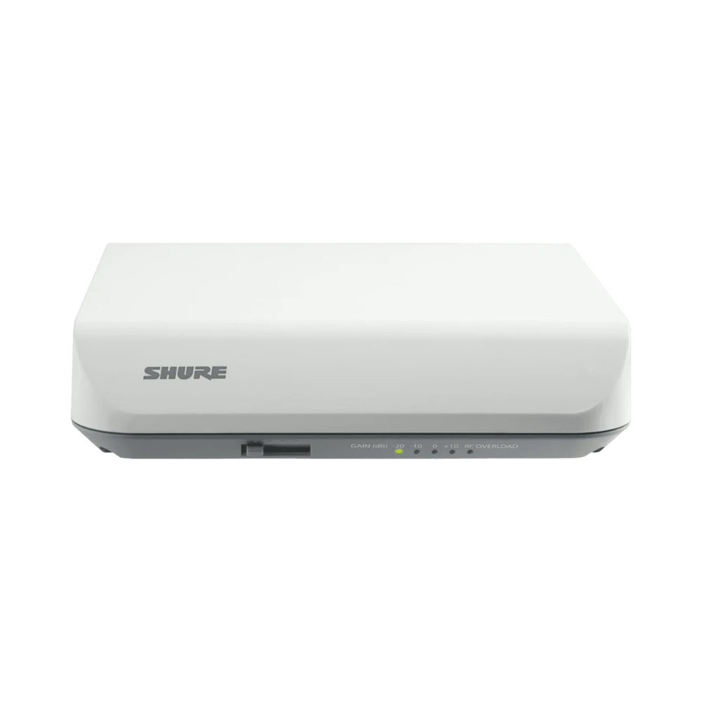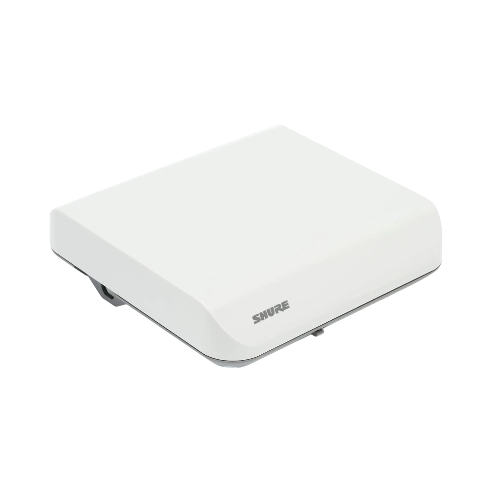The Shure UA864US is a wall-mounted wideband antenna designed for wireless microphone systems operating between 470 and 698 MHz. It provides reliable RF reception in indoor environments where a discreet and professional appearance is important. With a coverage pattern of about 100 degrees at the center frequency, it allows presenters and performers to move freely while maintaining consistent signal quality. The antenna includes a built-in BNC cable for easy installation on walls, ceilings, or metal surfaces, and its paintable enclosure helps it blend seamlessly into any room décor.