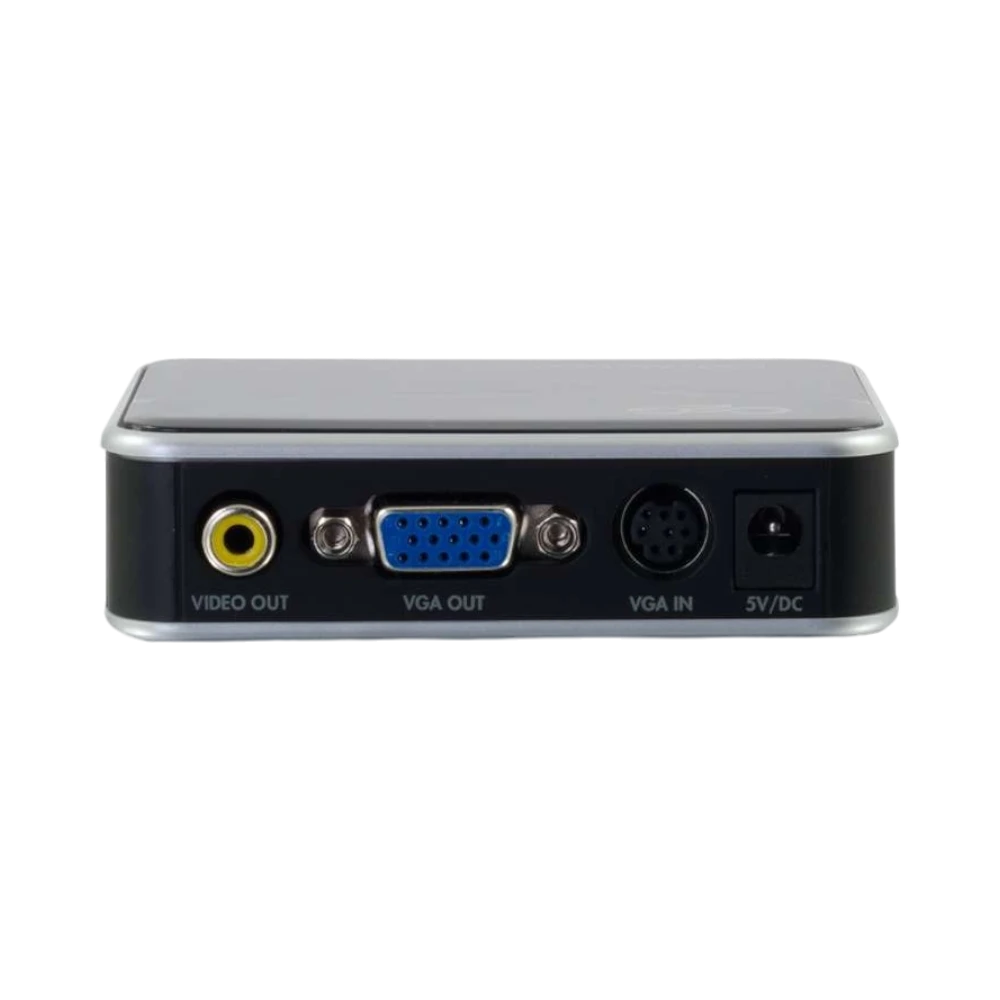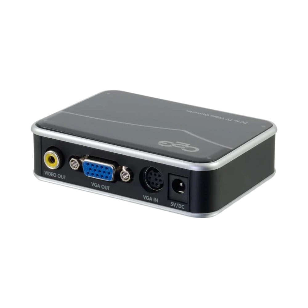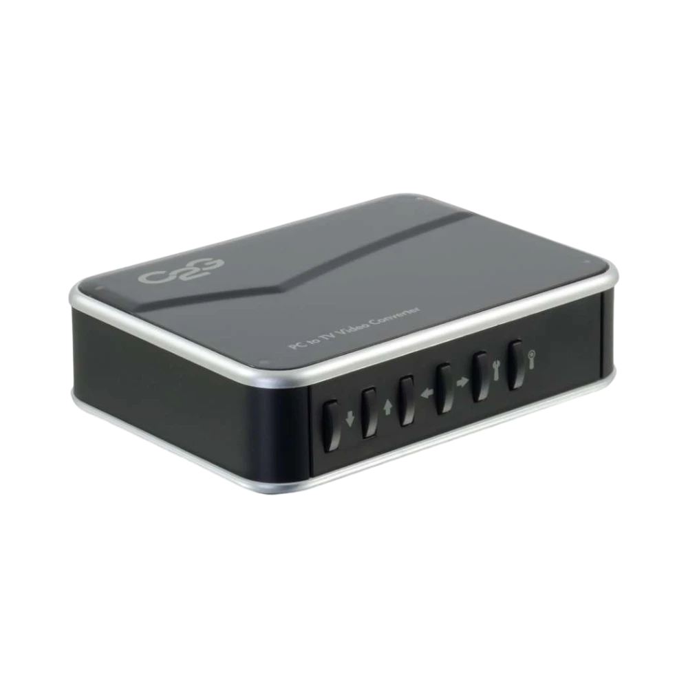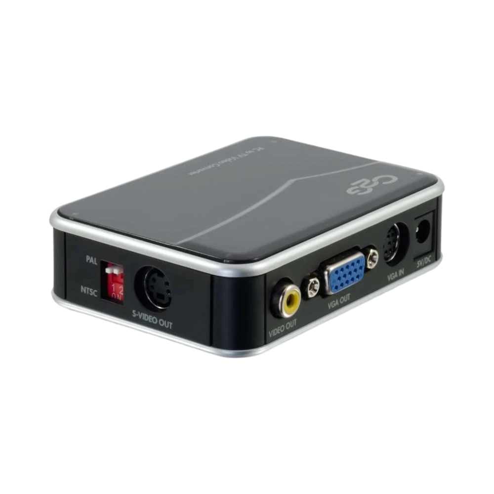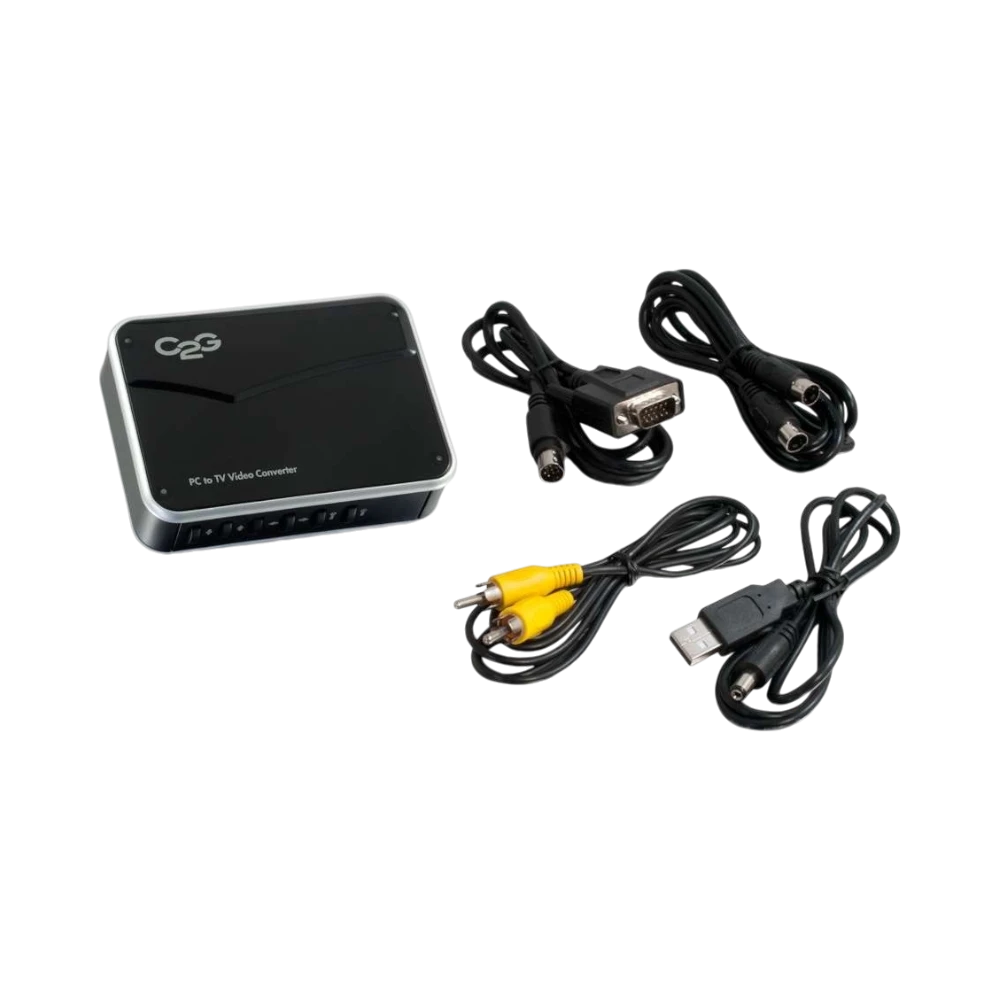 The C2G 29548 is a VGA to Composite and S-Video adapter designed to convert VGA output from a PC or Mac into analog video signals compatible with older televisions and projectors. It supports XGA resolution up to 1024x768, providing a clear and stable image on legacy displays that lack VGA or HDMI inputs. Powered via USB, this compact adapter is ideal for users who need to connect modern computers to vintage or analog video equipment without extra power cables.