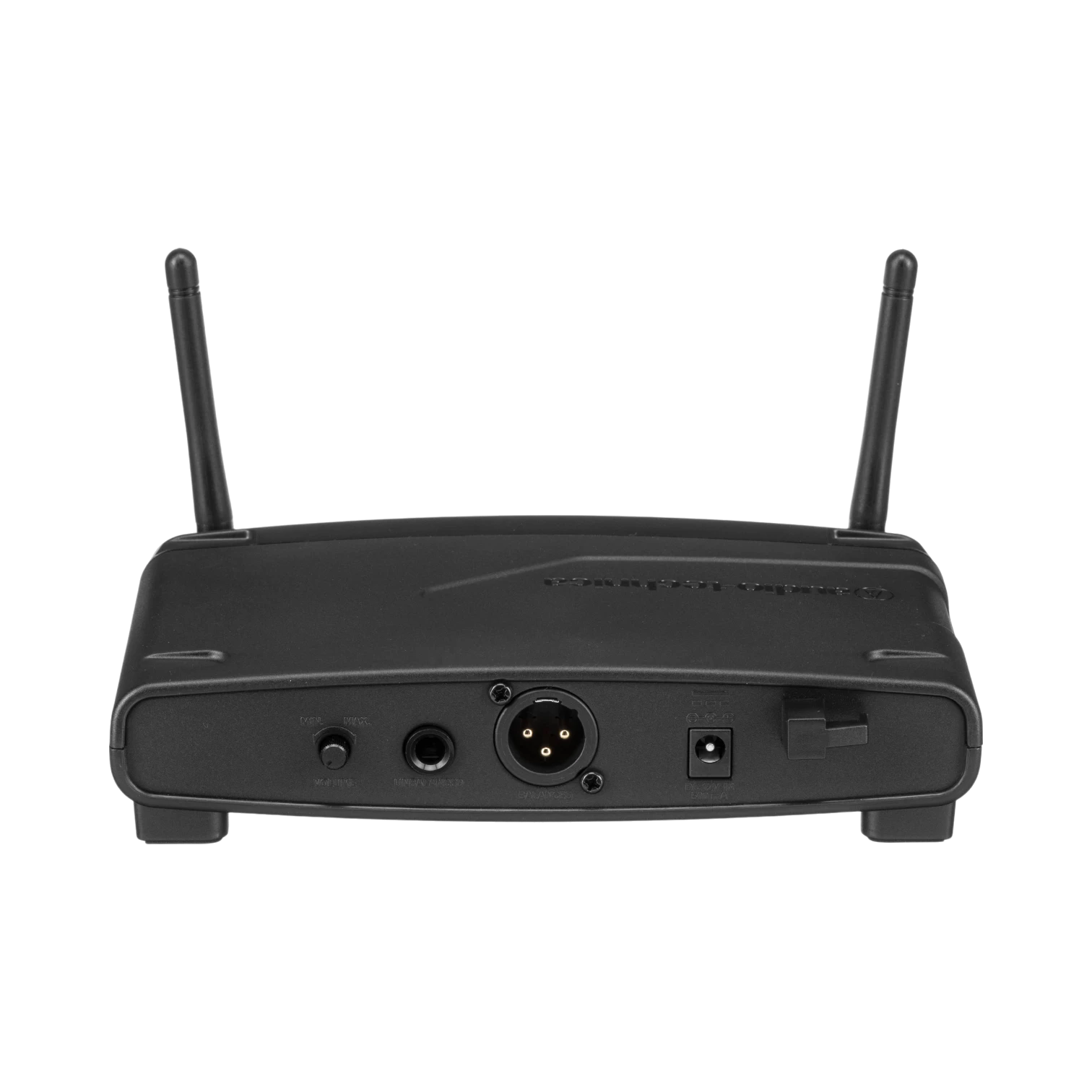 - Tabletop receiver offers balanced XLR and unbalanced 1/4-inch outputs for flexible connection to PA systems or audio interfaces.