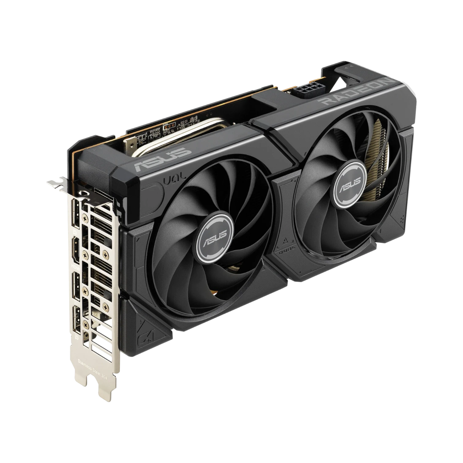 The ASUS DUAL-RX7600-O8G-EVO is a graphics card designed to deliver strong performance for mainstream gaming and creative tasks. Built on AMD’s RDNA 3 architecture and featuring a PCIe 4.0 interface, it offers 8 GB of GDDR6 memory and 2048 stream processors to handle smooth 1080p gaming and light 1440p workloads. With a boost clock reaching up to 2715 MHz in OC mode, it provides the extra power needed for fast-paced games and multitasking scenarios like streaming or video editing.