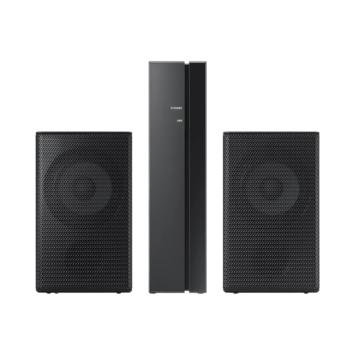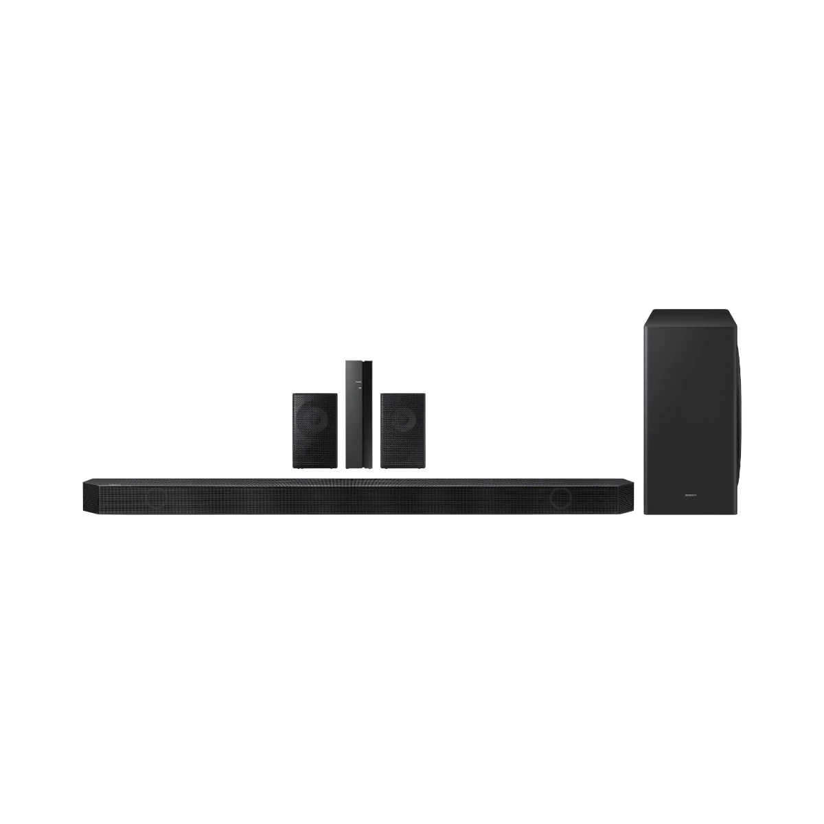 The Samsung HW-Q910B/ZA is a Wi-Fi soundbar system designed to transform your TV audio experience with a 9.1.2-channel setup delivering a total output of 520 watts. It features nine forward-firing speakers, a wireless subwoofer, and two up-firing speakers that create immersive sound moving around and above you. Dolby Atmos and DTS:X technologies place audio effects in three-dimensional space, making explosions feel overhead and dialogue remain clear and centered. This system is ideal for movie enthusiasts, gamers, and music lovers seeking rich, room-filling sound without clutter.