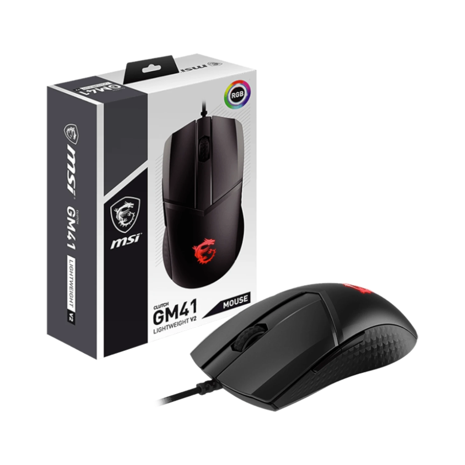 The MSI CLUTCHGM41V2 is a wired optical gaming mouse designed to deliver the speed and precision that competitive gamers demand. Weighing just 65 grams without the cable, it offers effortless gliding for quick flick shots and extended gaming sessions with less fatigue. Equipped with a PixArt PMW 3389 sensor, it supports sensitivity settings from 400 up to 16,000 dpi, allowing fine-tuned control for various gaming styles and environments.