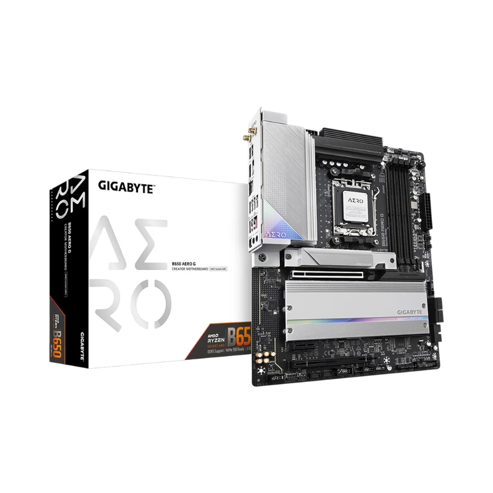 The Gigabyte B650 AERO G is an ATX motherboard designed for creators and professionals who need a reliable and high-performance platform. It supports AMD Ryzen 7000, 8000, and 9000 Series processors via the AM5 socket, allowing you to tailor CPU power to your workload. With support for up to 256GB of DDR5 memory running at speeds up to 8000 MT/s, this board handles intensive tasks like 4K video editing, large photo libraries, and virtual machines with ease.