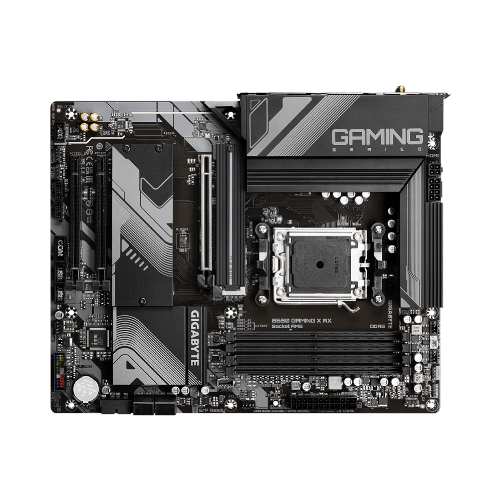 The Gigabyte B650 GAMING X AX is an ATX motherboard designed to support AMD Ryzen 7000 Series processors on the AM5 socket, providing a robust platform for gaming and content creation. It supports up to 256GB of DDR5 memory with speeds reaching 8000 MHz, ensuring fast load times and smooth multitasking. With advanced connectivity options including Wi-Fi 6E and 2.5 Gigabit Ethernet, this motherboard delivers stable and high-speed network performance for demanding online activities.