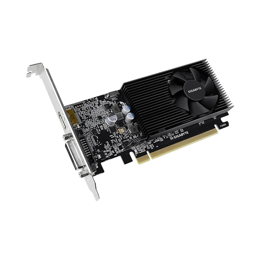 The Gigabyte GV-N1030D4-2GL is a low-profile graphics card designed to enhance the graphics performance of compact or space-limited desktop systems. Equipped with 2GB of DDR4 memory and 384 CUDA cores, it delivers smooth handling of everyday computing, light gaming, and 4K video playback. Its HDMI and DVI-D outputs support resolutions up to 4096 x 2160 at 60Hz, making it a practical choice for users who want high-resolution visuals without a bulky card.