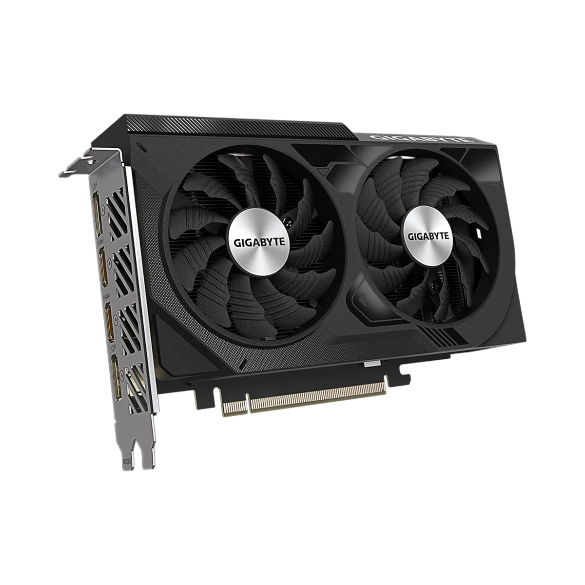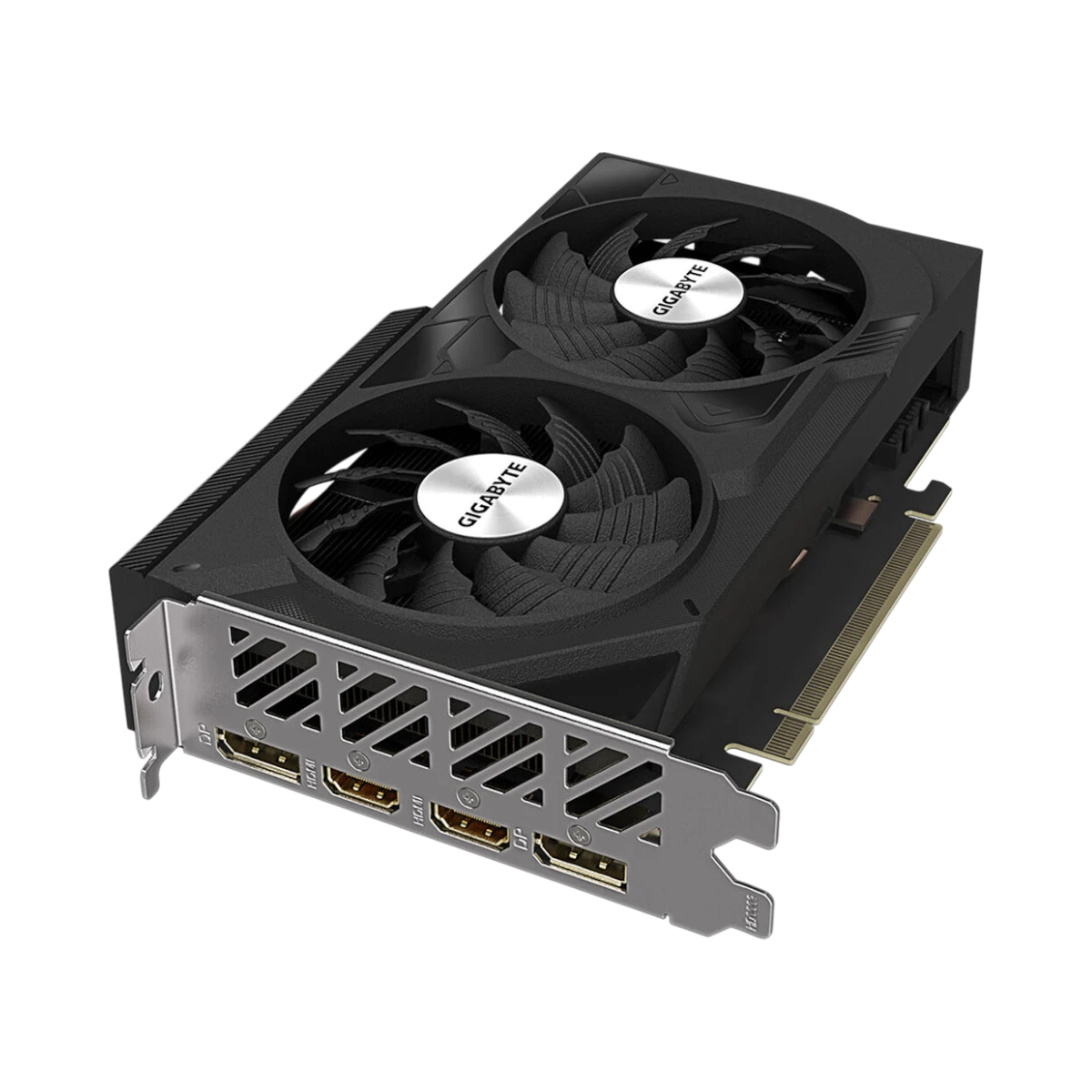 Its WINDFORCE 2X cooling system uses two 90 mm fans spinning in opposite directions to reduce turbulence and maintain optimal temperatures. The compact dual-slot design and single 8-pin power connector make it suitable for mid-tower and small-form-factor builds, while multiple display outputs support versatile multi-monitor setups.
