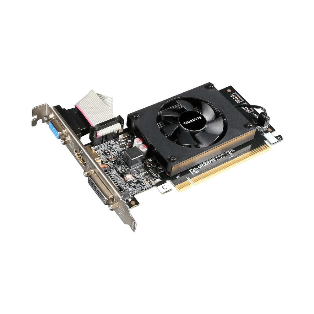 The Gigabyte GV-N710D3-2GL V2 is a low-profile graphics card designed to provide reliable graphics performance for systems needing a straightforward upgrade. Powered by the NVIDIA GeForce GT 710 GPU and equipped with 2 GB of DDR3 video memory running at a core clock speed of 954 MHz, it enhances everyday computing tasks such as web browsing, office productivity, and high-definition video playback. Its compact design fits well in small-form-factor desktops, making it a practical choice for home offices, classrooms, and media centers.