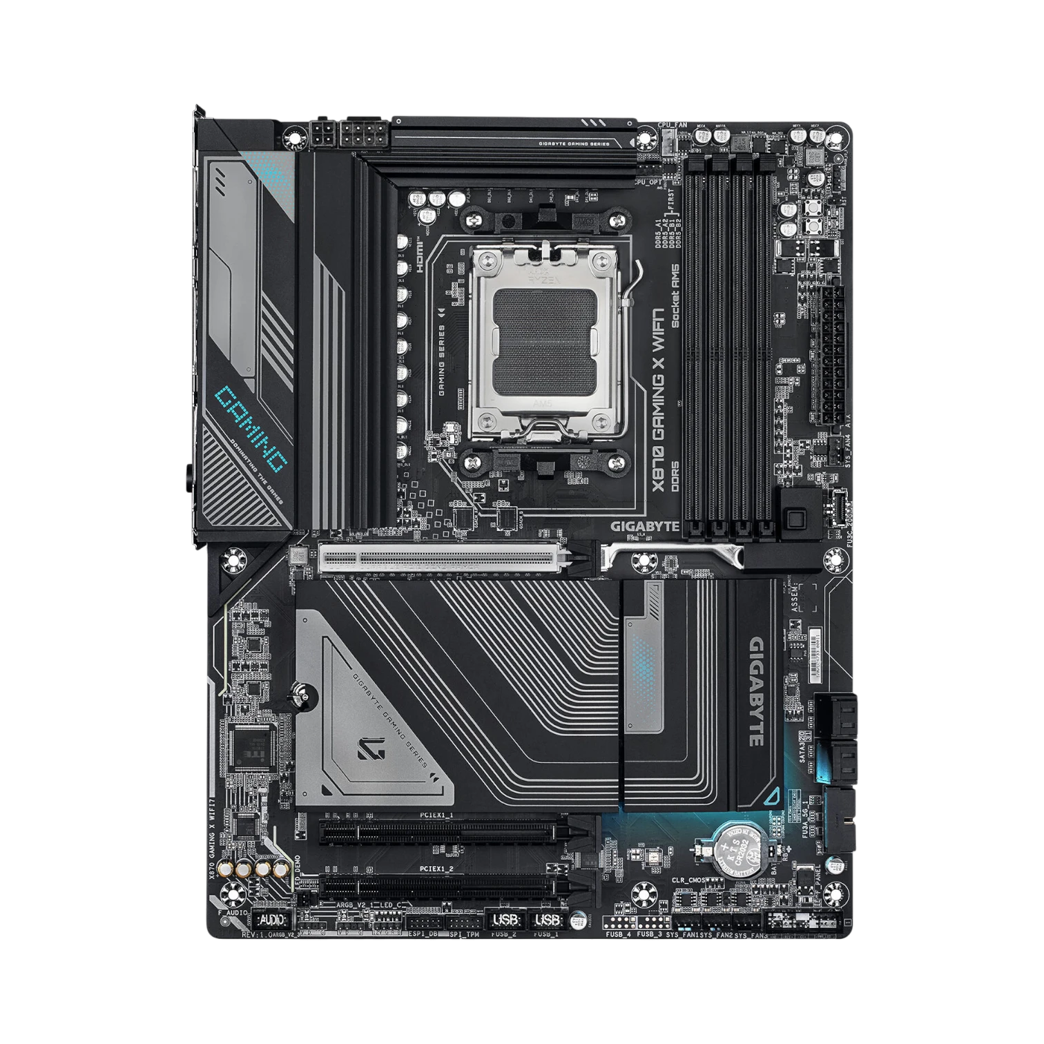 The Gigabyte X870 GAMING X WIFI7 is an ATX motherboard designed for PC builders who want a platform that supports AMD Ryzen 7000, 8000, and 9000 Series processors on the AM5 socket. It offers four DDR5 memory slots capable of speeds up to 8000 MT/s and supports up to 256 GB of RAM, making it suitable for gaming, content creation, and multitasking. With PCIe 5.0 support, advanced networking options, and user-friendly features, this motherboard provides a solid foundation for both current and future hardware upgrades.
