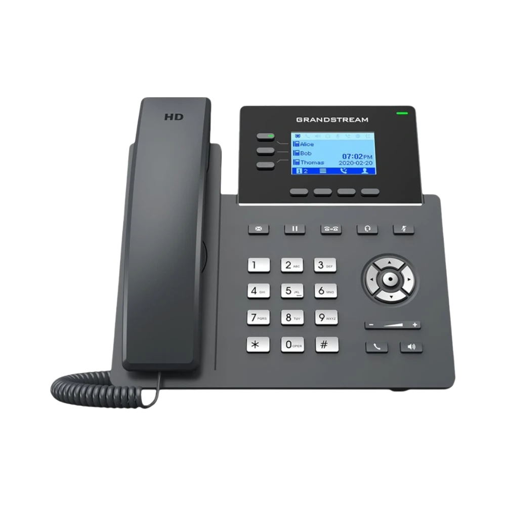 The Grandstream GRP2603P is a three-line PoE IP phone designed to deliver clear and reliable communication in professional environments. It features full HD audio on both the handset and built-in speaker, ensuring conversations remain crisp and intelligible. This phone is well suited for busy offices, call centers, and reception areas where handling multiple calls and quick team collaboration are essential.