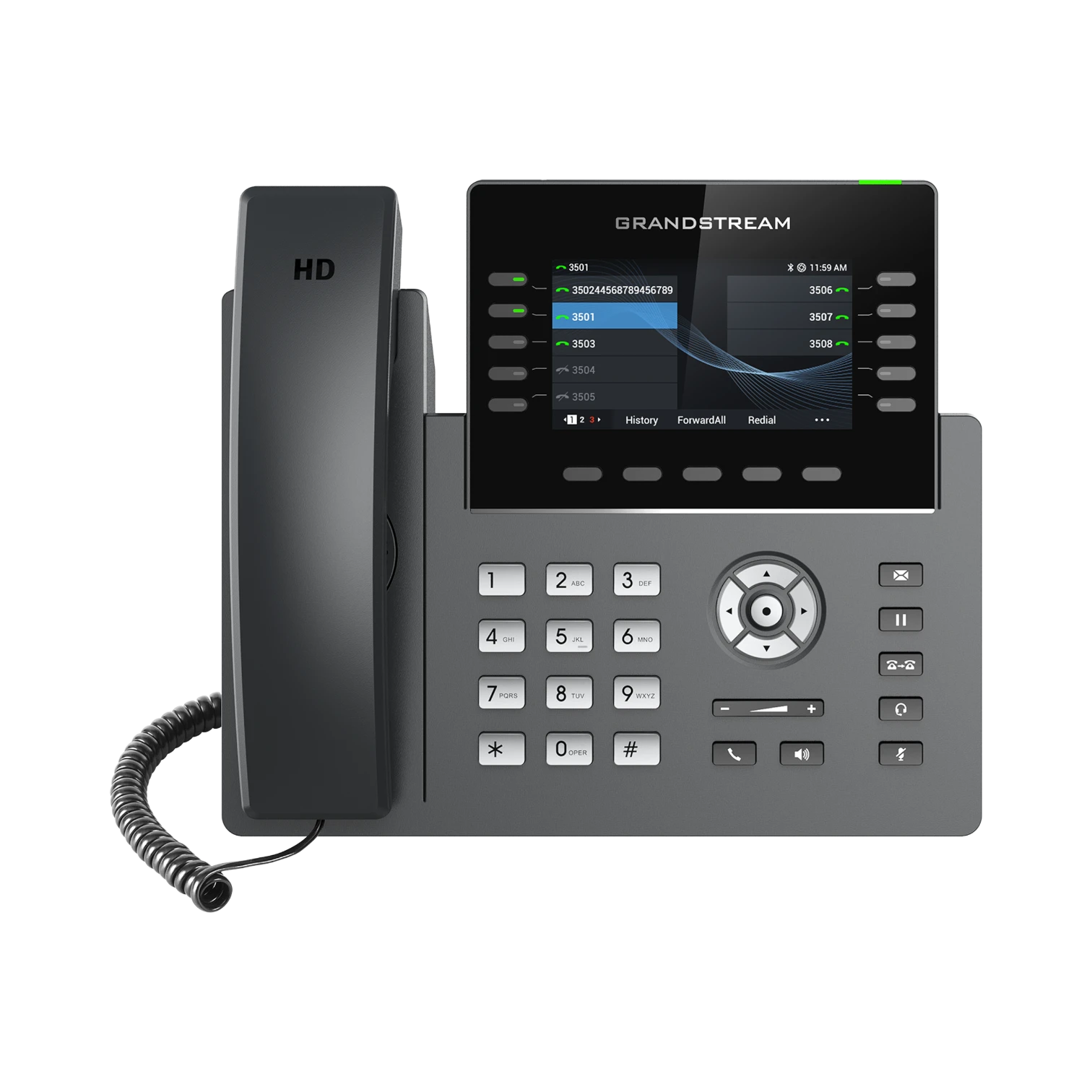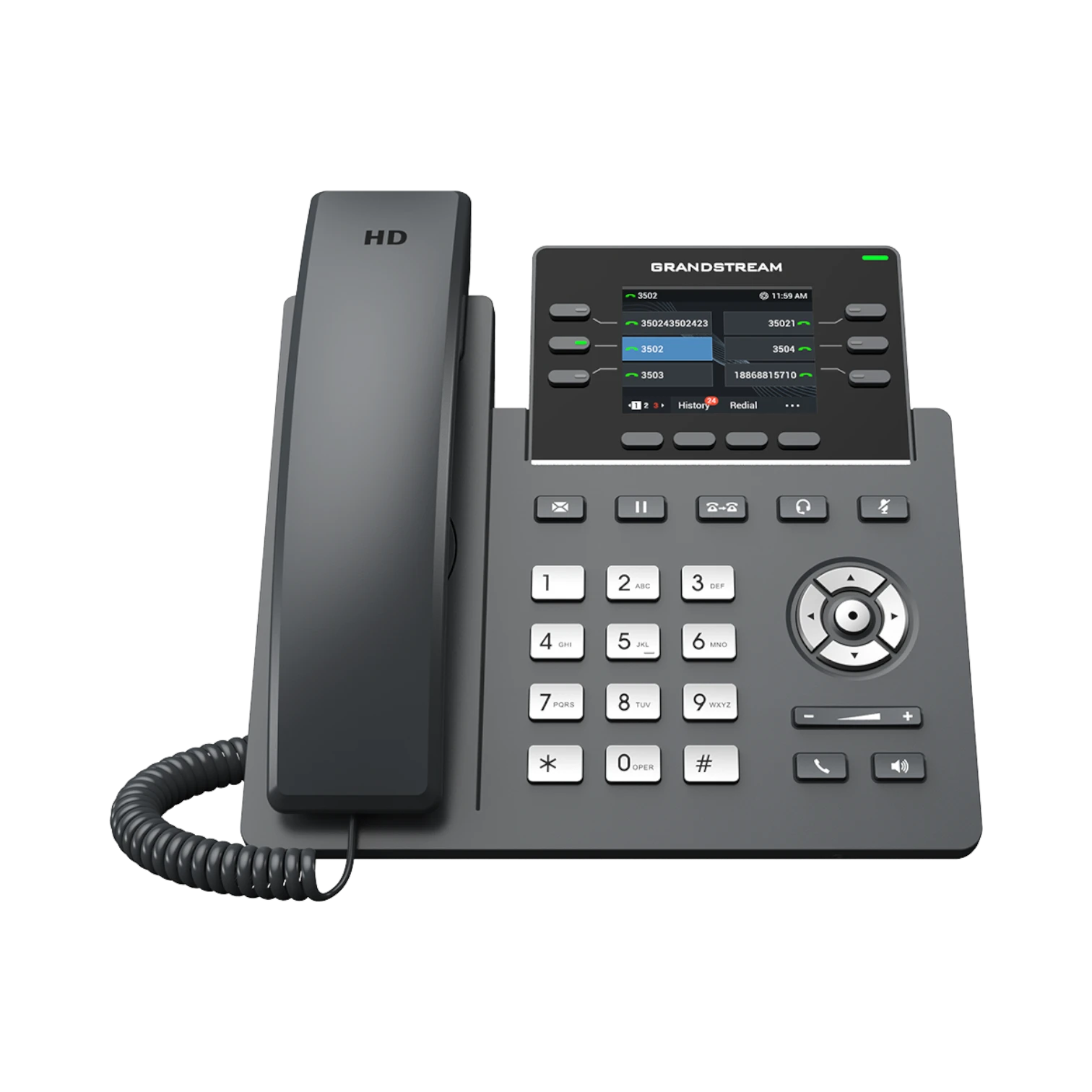 The Grandstream GRP2613 is a carrier-grade IP phone designed for organizations that require a reliable desk phone capable of handling multiple lines and accounts without sacrificing features or security. It supports six lines and four SIP accounts, making it easy for users to manage several numbers, extensions, and call queues from a single handset. The 2.8-inch color LCD provides clear call details and an intuitive interface for accessing directories, voicemail, and system settings.