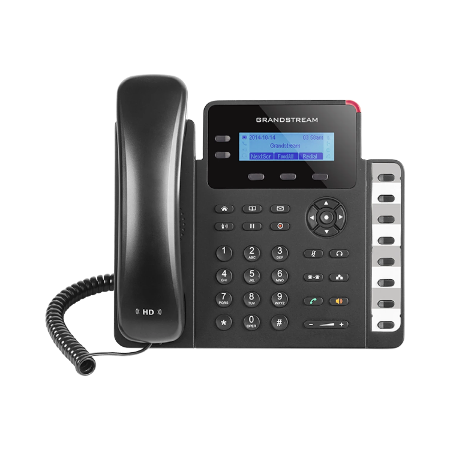 With dual Gigabit ports and integrated PoE, the GXP1628 ensures fast network connectivity and reduces cable clutter by drawing power directly from a PoE switch or injector. Its HD audio on both the handset and speakerphone delivers clear sound quality, suitable for busy office environments where call clarity is essential.