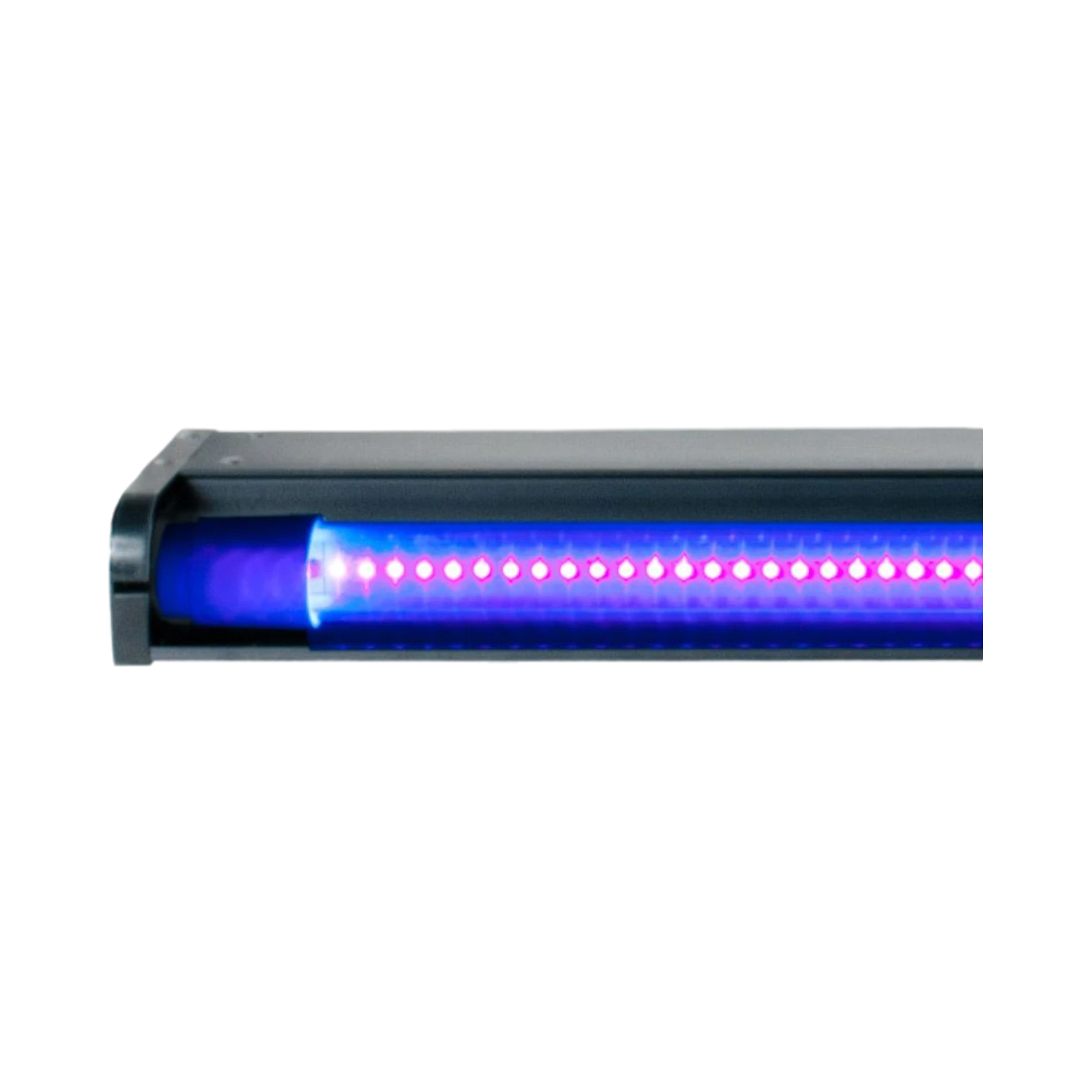 The ADJ UVL480 is a 4-foot black light bar designed to deliver a vibrant ultraviolet wash using 96 SMD UV LEDs, each rated at 0.3 W. It provides a consistent 120-degree beam angle that evenly covers walls, stages, and dance floors, making it well suited for small stages, lounge areas, glow parties, haunted attractions, and mobile DJ setups. Its lightweight design at just 1.7 lbs and built-in mounting points allow for easy installation on truss, stands, or walls without additional hardware.
