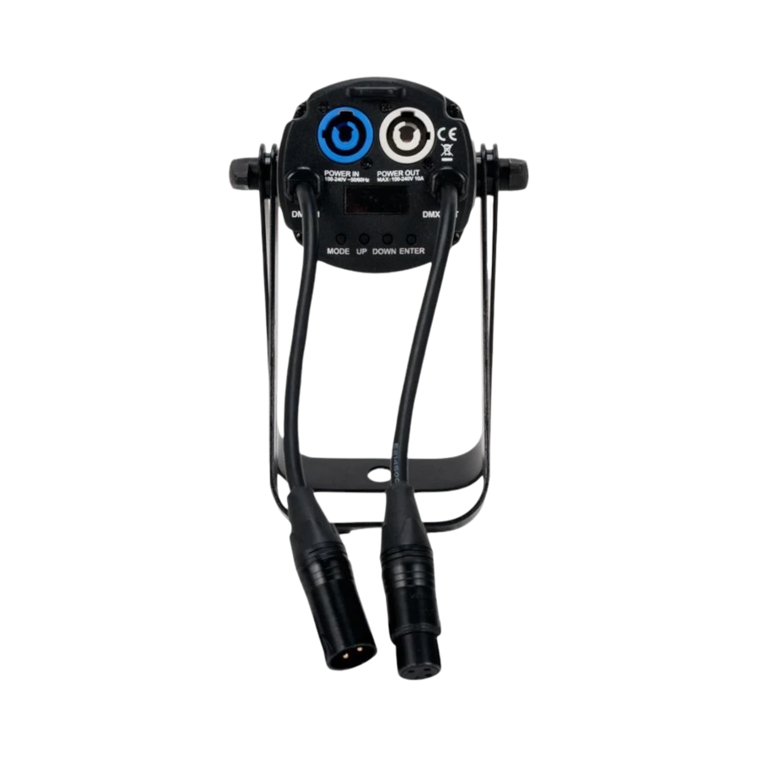 The fixture supports standard DMX control protocols, making it compatible with a wide range of lighting consoles and controllers. Its locking power connectors allow safe and reliable daisy-chaining, simplifying installation in multi-light setups. This spotlight integrates well into both standalone applications and larger professional lighting rigs, offering flexibility for different event sizes and environments.