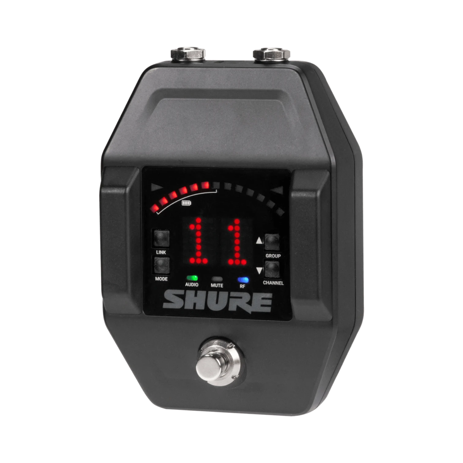 The Shure GLXD6+=-Z3 is a dual-band wireless guitar pedal receiver designed to replace your instrument cable with a reliable wireless connection. It operates on both 2.4 GHz and 5.8 GHz frequencies, automatically selecting the clearest channel to maintain consistent performance. With an indoor range of up to 100 feet and an outdoor range of about 65 feet, it ensures freedom of movement without compromising tone or signal stability.