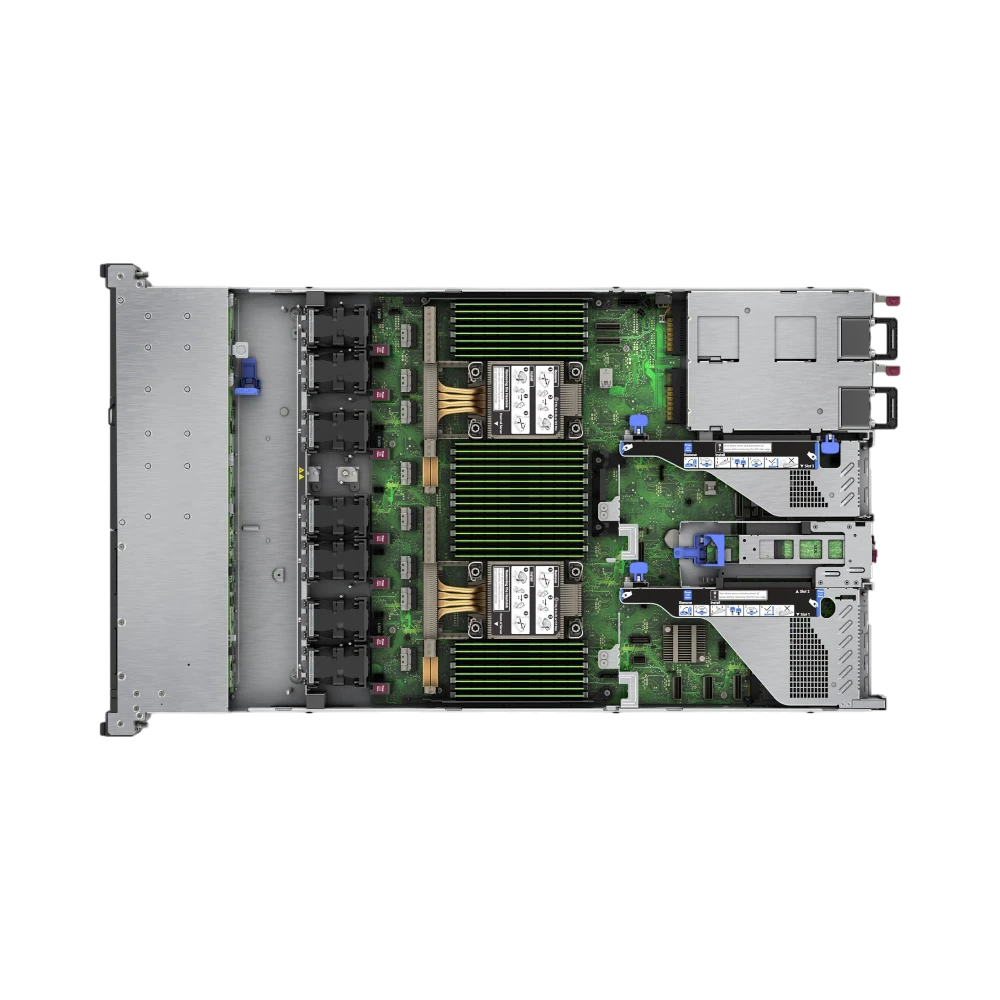 This server is ideal for data centers where space is limited but performance cannot be compromised. It supports up to eight small form factor drives for scalable storage without increasing rack space. Dual 1000W hot-plug power supplies provide high availability, while four Gigabit Ethernet ports and PCIe Gen5 slots offer flexible connectivity and future expansion options. Integrated iLO remote management simplifies hardware monitoring and maintenance from any location.