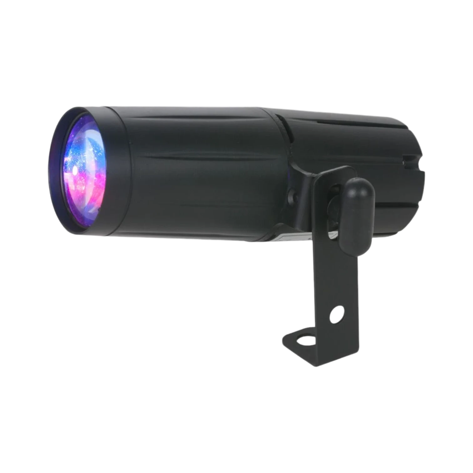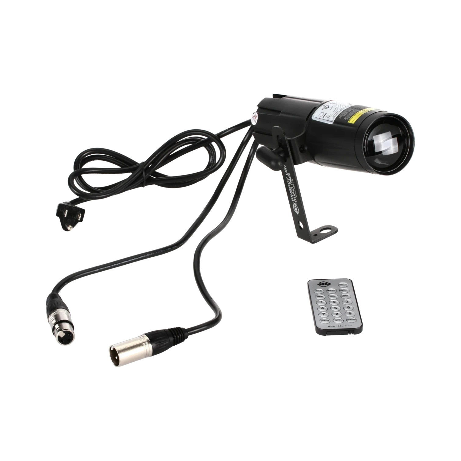 This pinspot light works well in event spaces, clubs, retail displays, and theatrical productions where precise accent lighting is needed. It is a strong choice for mobile DJs and event planners who require portable, reliable lighting that can highlight specific areas or objects. Its flicker-free output also makes it suitable for video recording environments.