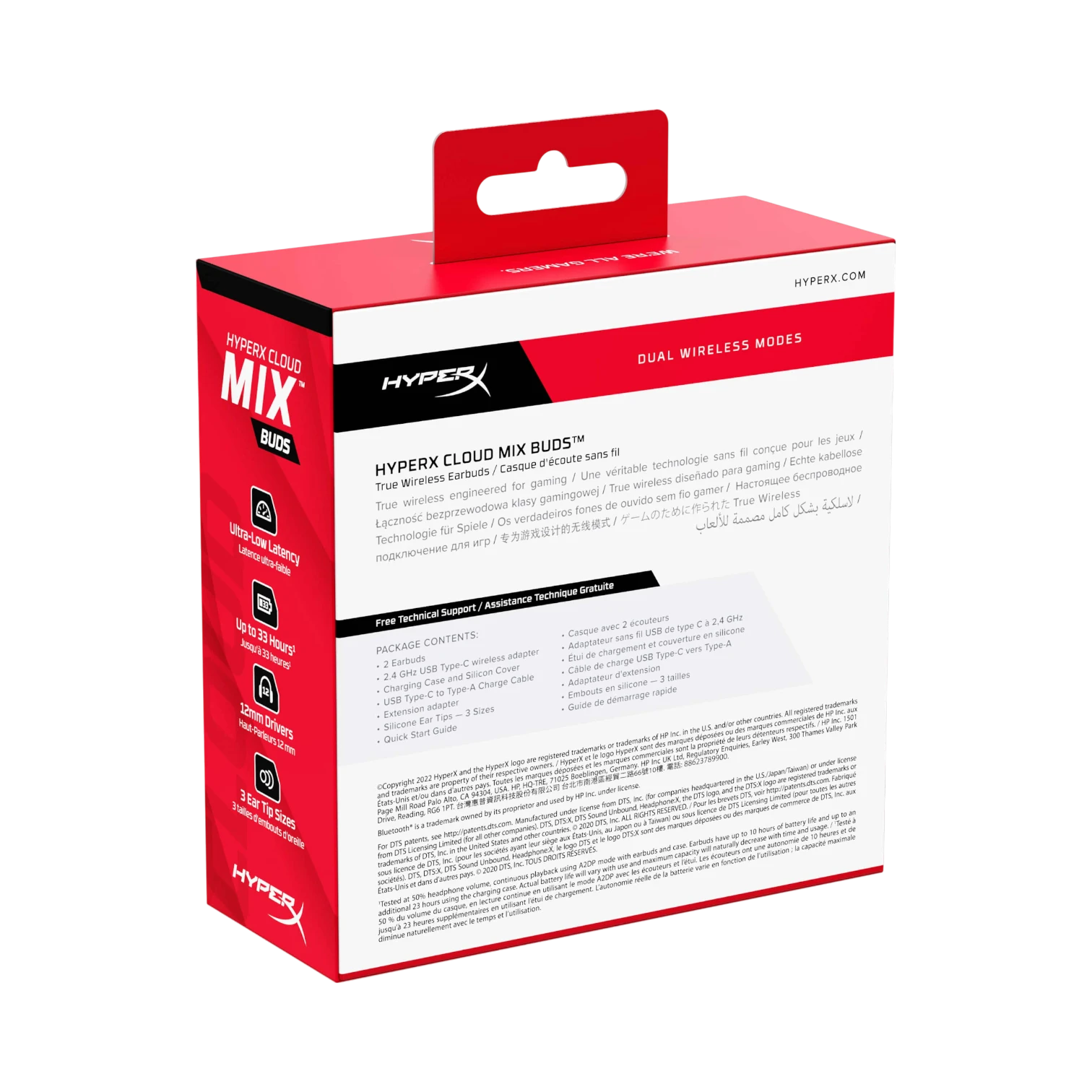 The HyperX 4P5D9AA is a set of Cloud MIX True Wireless Gaming Earbuds designed to deliver fast and reliable audio for gamers and mobile users alike. Featuring low-latency 2.4 GHz wireless connectivity through a USB-C adapter and Bluetooth 5.2 support, these earbuds provide seamless switching between competitive gaming and everyday activities. With up to 33 hours of total battery life from the compact charging case, they offer extended use for long gaming sessions, calls, or music on the go.