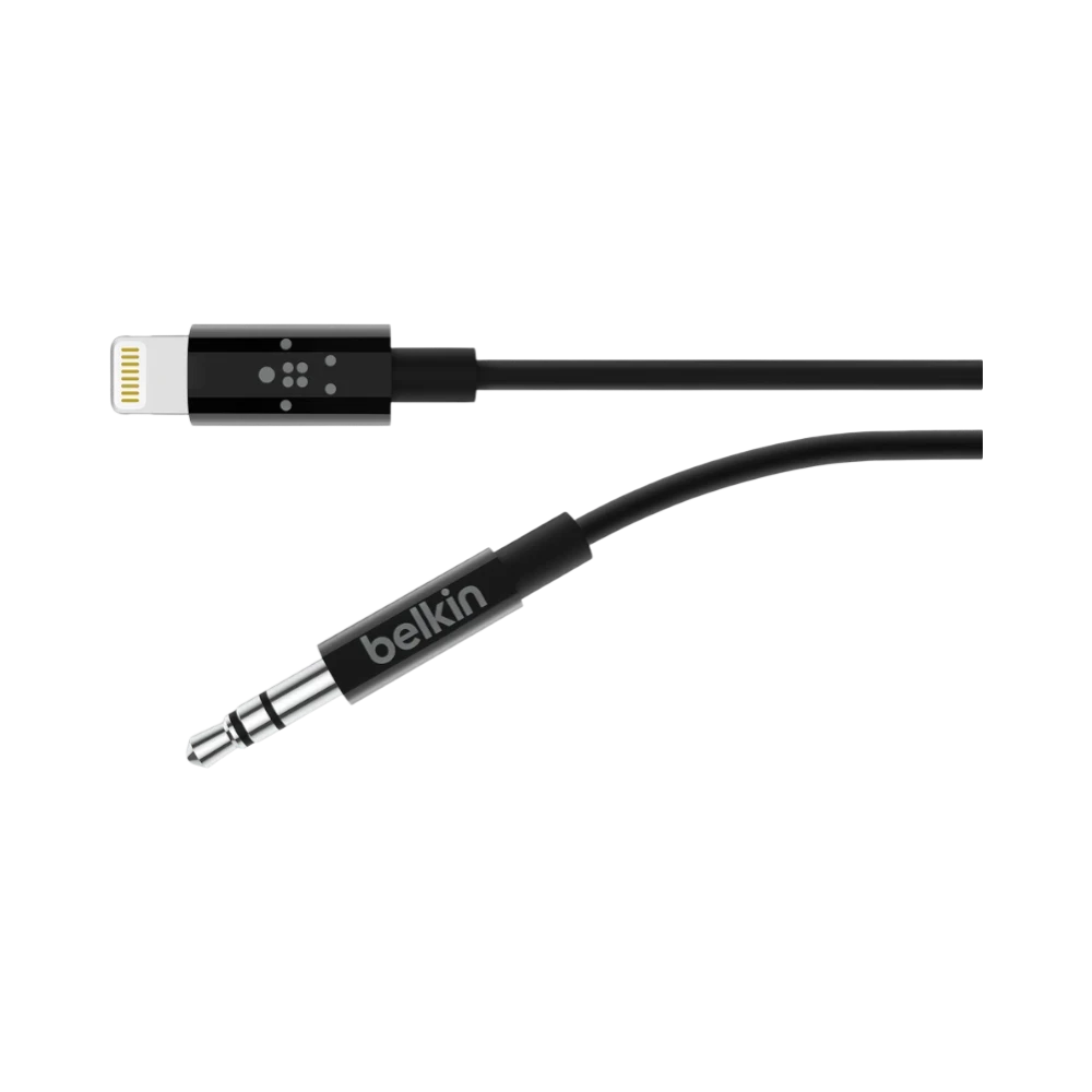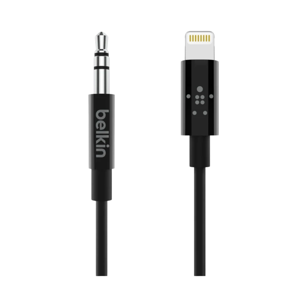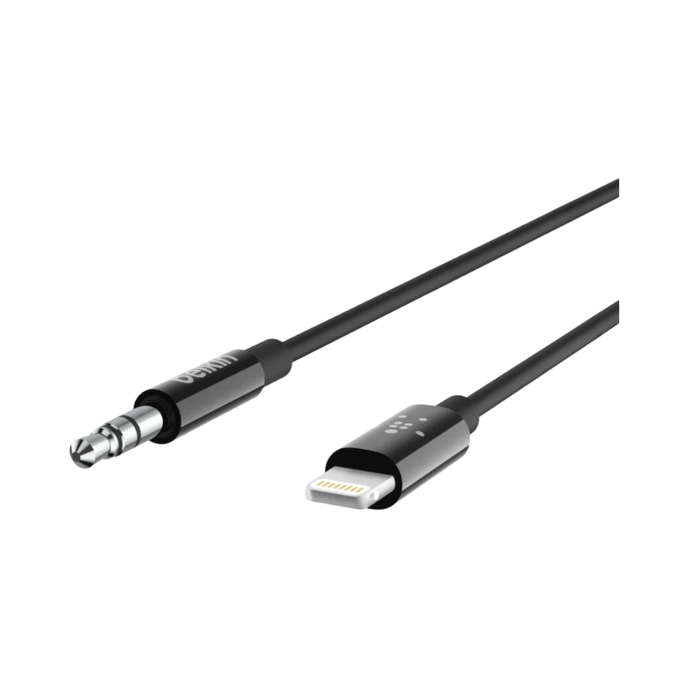 The Belkin AV10172BT06-BLK is a 3.5mm audio to Lightning cable designed to connect your iPhone directly to any device with a standard 3.5 millimeter audio input. Measuring six feet in length, it provides ample reach for connecting to car stereos, powered speakers, or home audio receivers. This cable ensures seamless audio playback for music, podcasts, and navigation prompts without the need for additional adapters.
