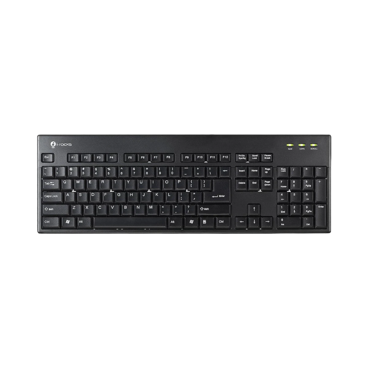 The I-Rocks IRK32W-BK is a washable 104 key keyboard designed to provide a durable and reliable typing experience, especially for users who often work in environments where spills and crumbs are common. It connects via a USB cable for easy plug-and-play setup with Windows PCs, supporting versions from XP through 10. The keyboard features a slim profile and weighs about 562 grams, making it portable and easy to position on any desk.