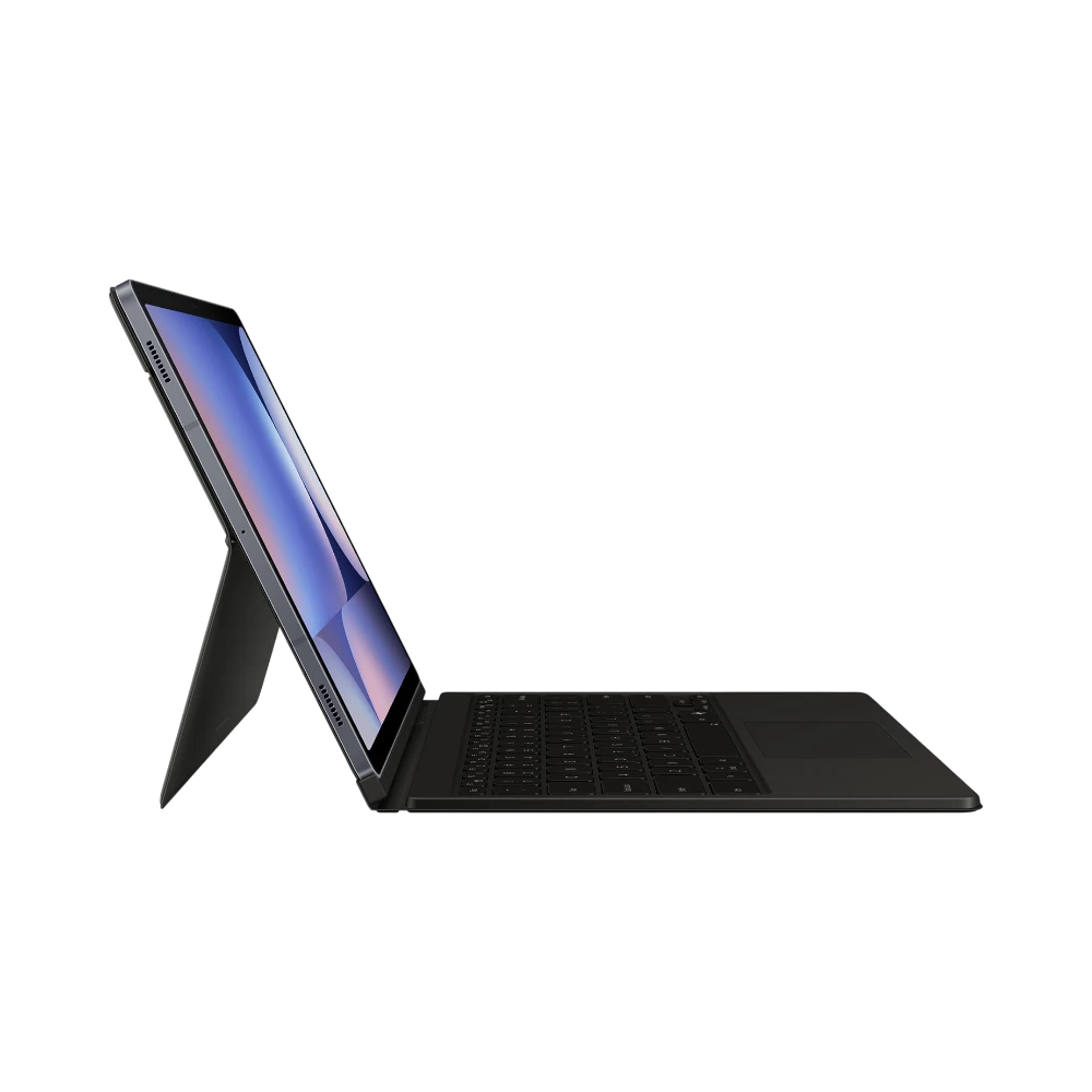 The Samsung EF-DX825UBEGUJ is a book cover keyboard designed to transform your Galaxy Tab S10+, S9+, or S9 FE+ into a versatile workstation. It combines a protective folio with a full-size keyboard and a responsive touchpad, providing a laptop-like experience without adding unnecessary bulk. The keyboard connects instantly via POGO pins or Bluetooth, offering flexible use whether you prefer the keyboard attached or at a distance.
