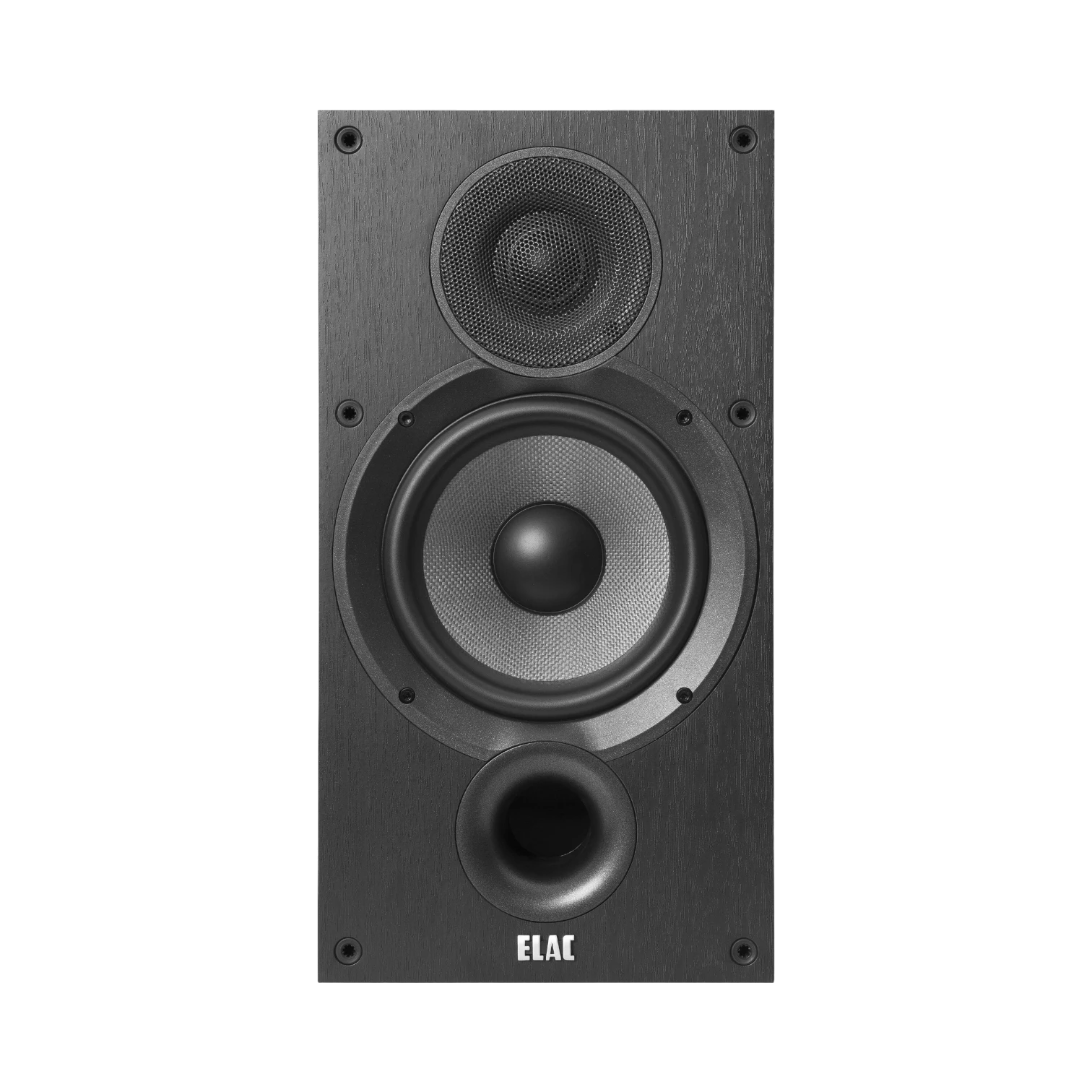 - Front-firing bass port enables placement close to walls or on shelves without muddying bass response