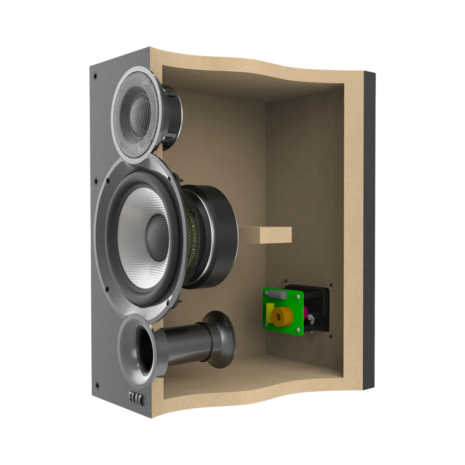 - Cabinet material: MDF enclosure