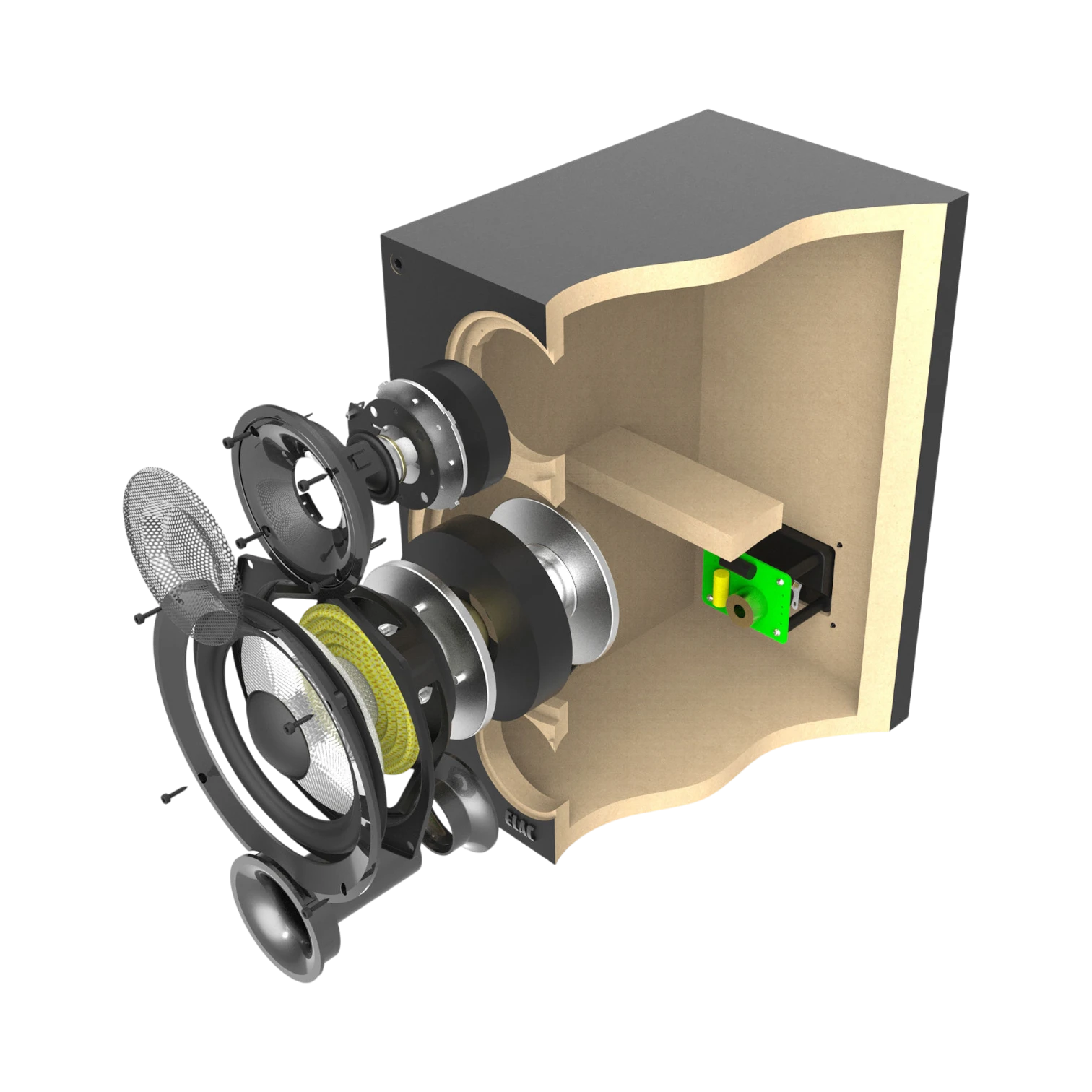 - Wide-dispersion waveguide ensures smooth and precise highs throughout a broad listening area
