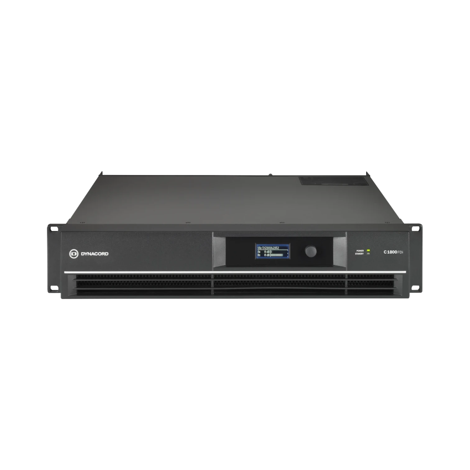 The Dynacord C1800FDI-US is a 1900 watt DSP installation amplifier designed to deliver consistent, high-quality sound across a variety of venues. It offers flexible power output with two channels capable of delivering up to 1400 watts at 2 ohms, making it suitable for both distributed ceiling speaker systems and full-range loudspeaker setups. Integrated DSP features allow precise tuning of audio parameters, ensuring clear and accurate sound reproduction tailored to the specific acoustic environment.