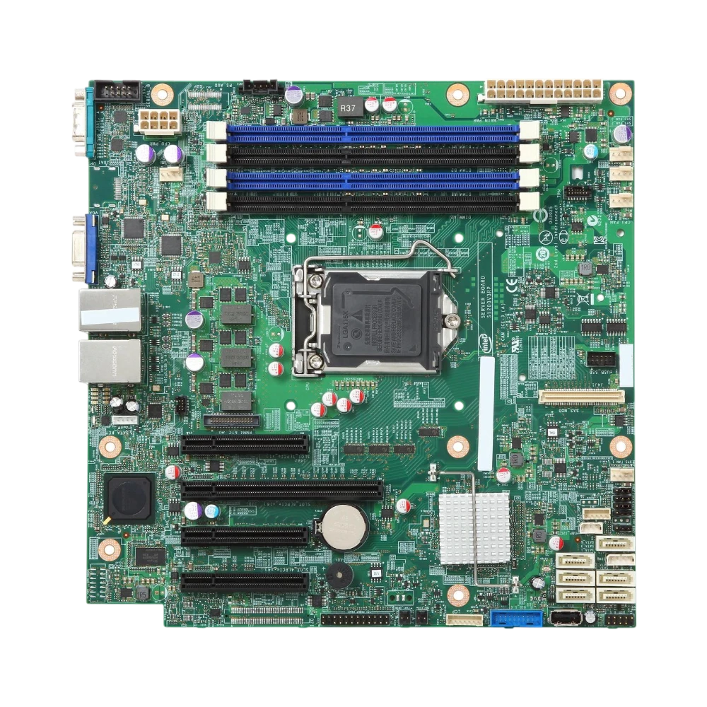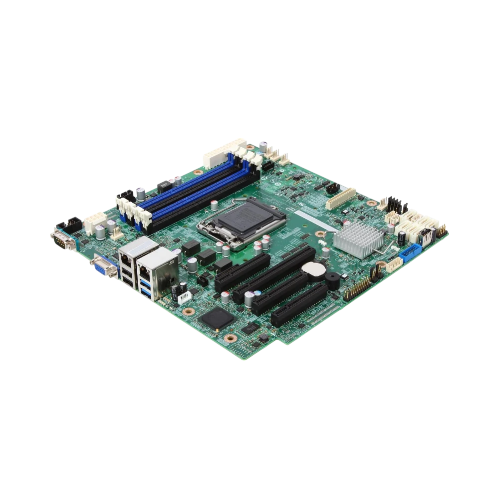 The Intel DBS1200V3RPL is a server motherboard designed around the Intel C224 chipset and LGA 1150 socket, supporting Intel Xeon E3-1200 v4 processors. It provides a solid foundation for small office servers, home labs, or first-time server builds that require dependable performance and straightforward expandability. With support for up to 32 GB of DDR3 ECC memory and six SATA ports with RAID capabilities, it balances reliability and flexibility for a variety of workloads.
