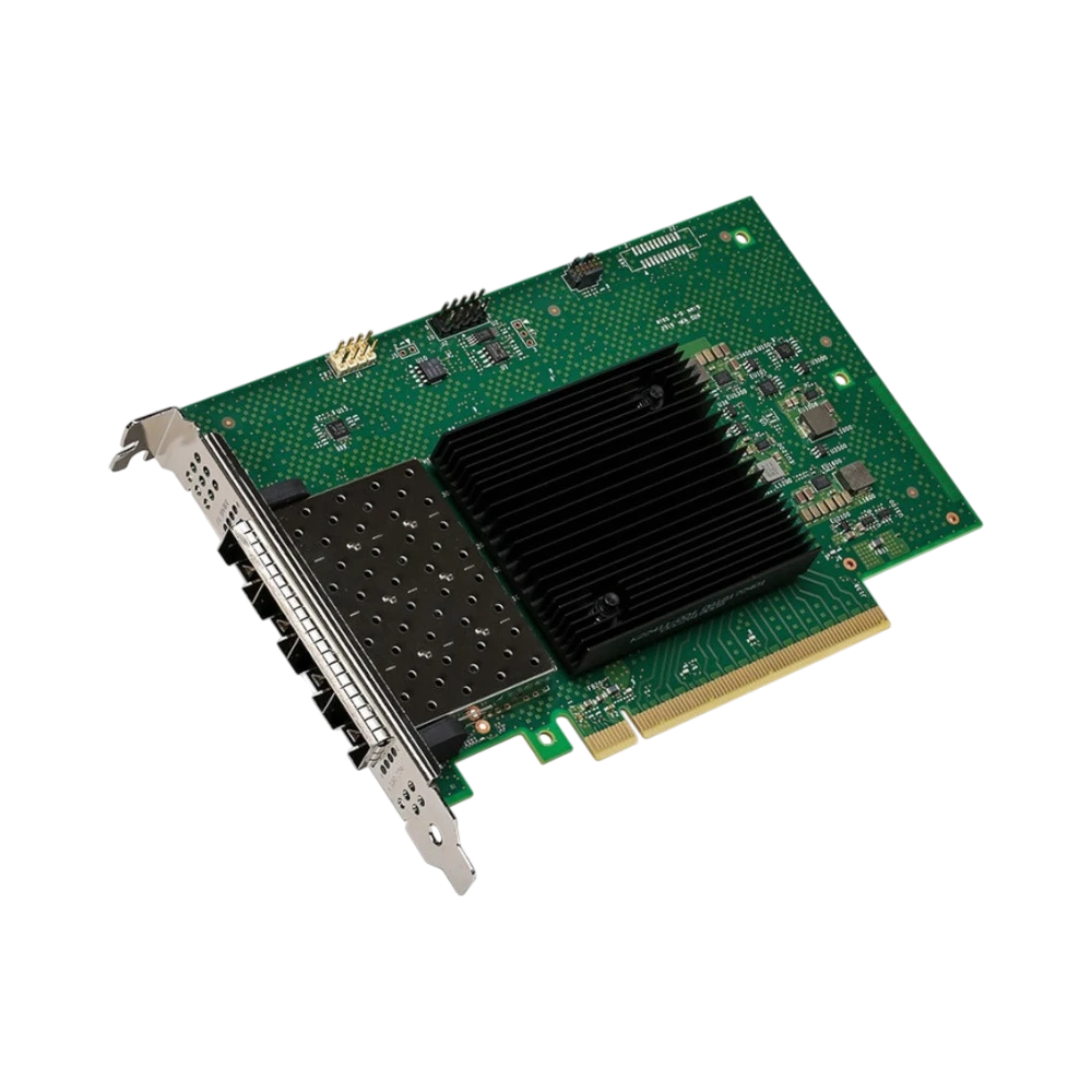 This adapter supports a range of network connections through its four SFP28 cages, which accept both copper direct attach cables and fiber optic transceivers. This flexibility allows integration into existing network infrastructures without requiring immediate cabling changes. The PCIe 4.0 x16 slot interface ensures compatibility with modern server motherboards that support high-speed data transfer, making it a strong fit for virtualization hosts, hyperconverged clusters, and high-performance computing nodes.