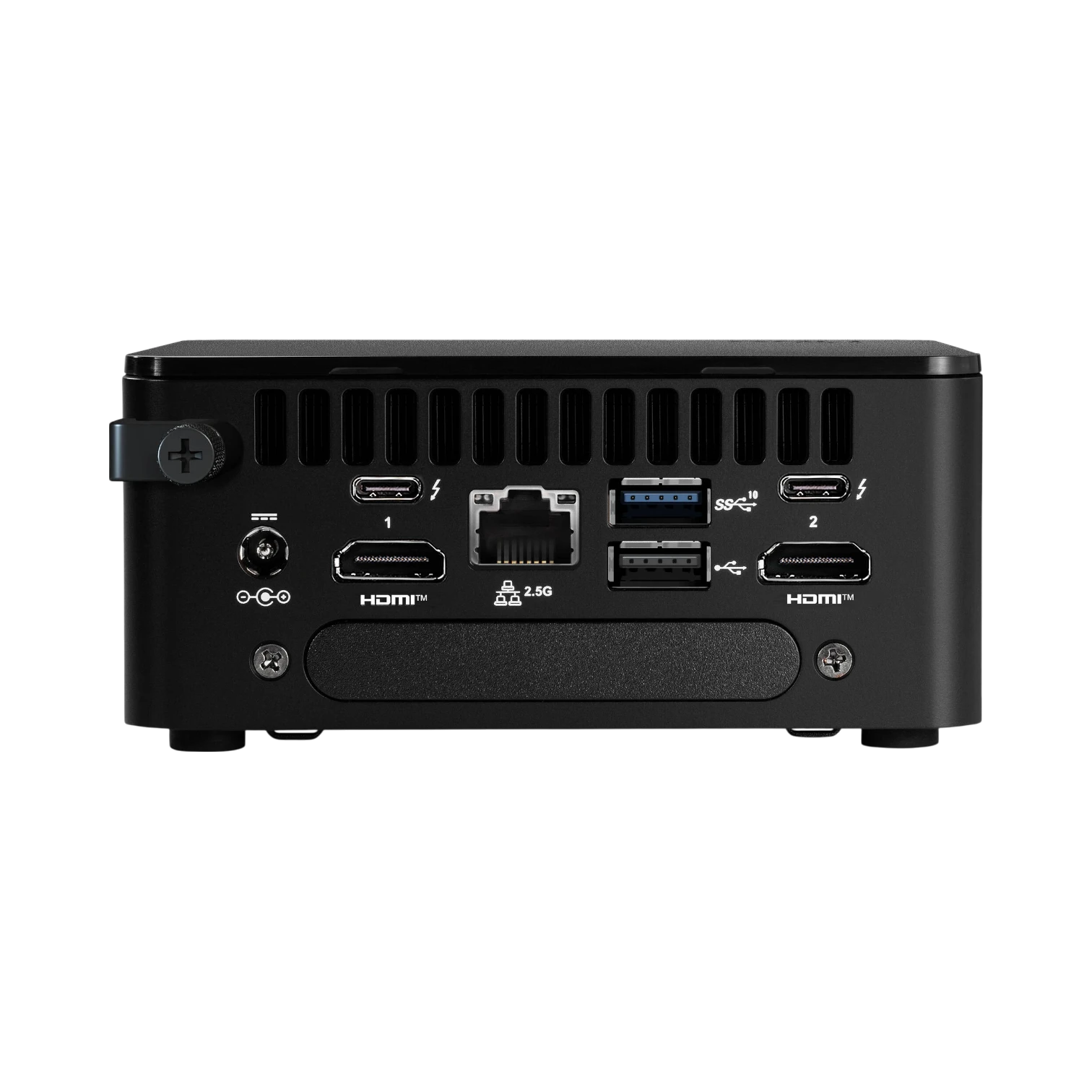 This mini PC offers a comprehensive set of ports and wireless options to fit into various setups. The 2.5 Gb Ethernet port ensures reliable and fast wired network connections, while Wi-Fi 6E provides access to the latest wireless standards for high-speed internet and low latency. Bluetooth 5.3 supports a wide range of peripherals such as keyboards, mice, and audio devices. Dual HDMI 2.1 ports and Thunderbolt 4 ports allow connection to multiple high-resolution displays, supporting workflows that require extensive screen real estate.