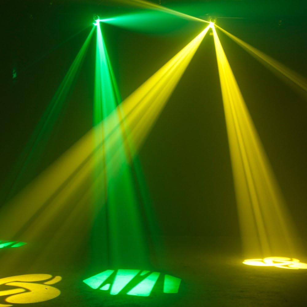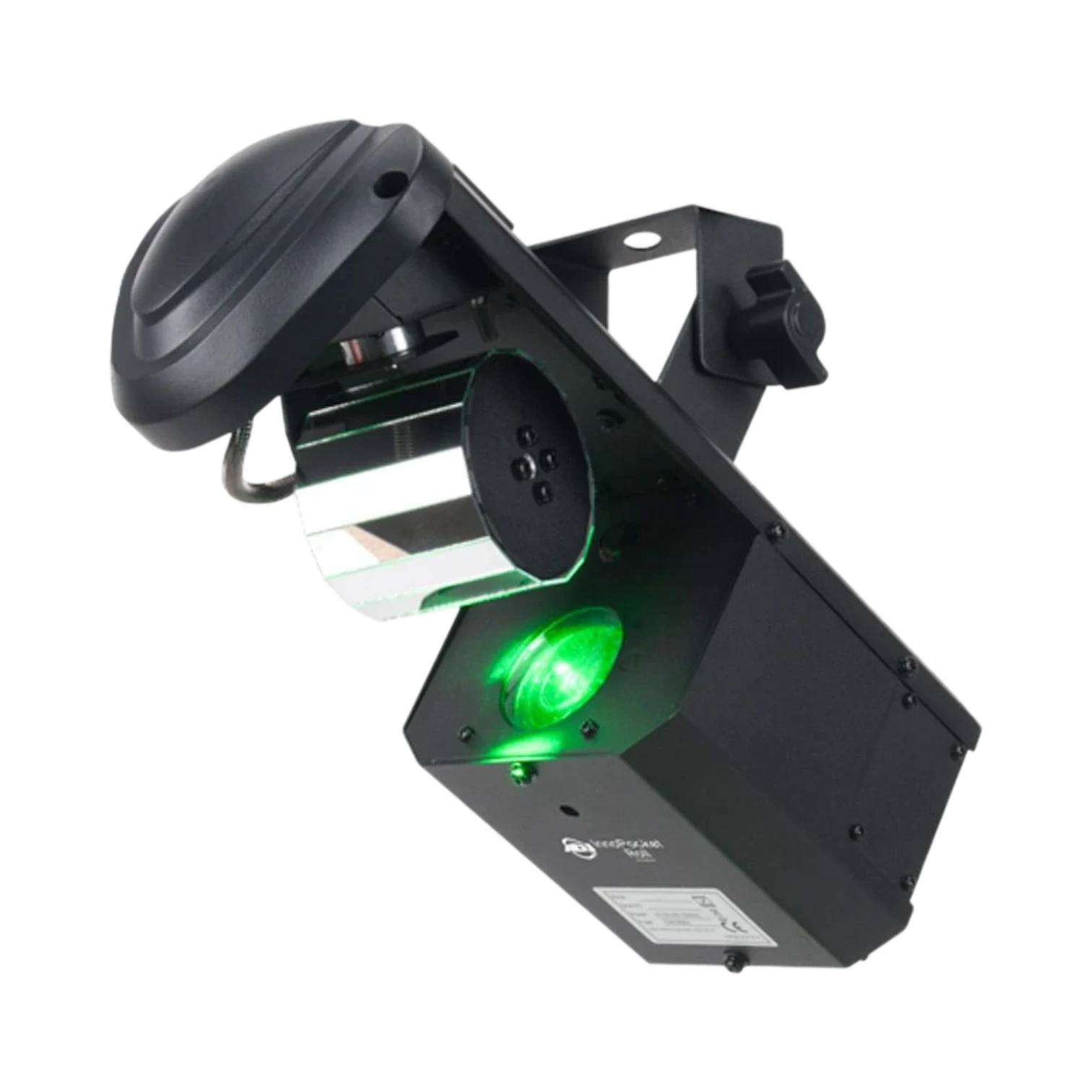 - Two mirrored barrel scanners that create sweeping and bouncing light effects with precise X and Y micro stepping motors