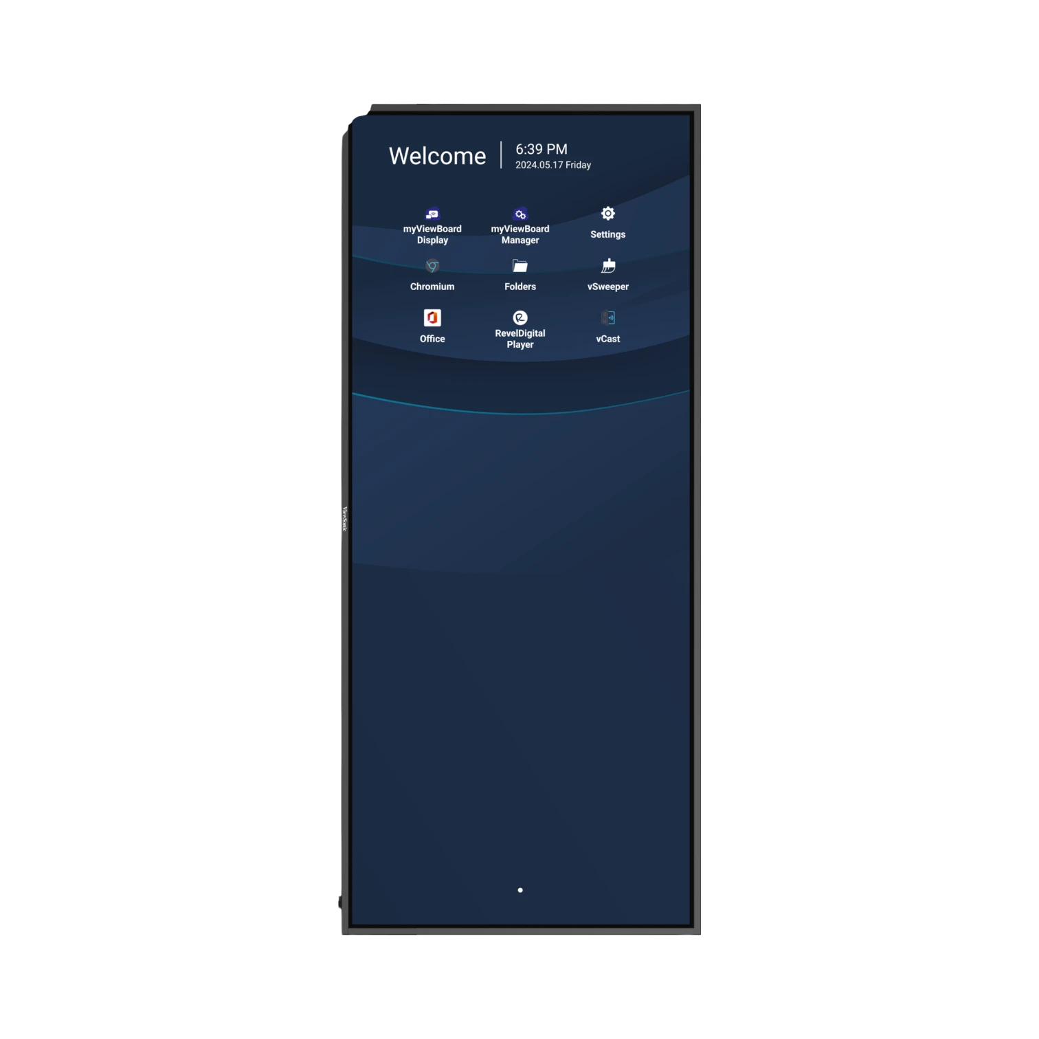 Engineered for demanding commercial use, this display is rated for continuous 24/7 operation, making it suitable for locations with constant activity such as lobbies and transport hubs. The anti-glare surface and 500-nit brightness maintain image clarity under bright lighting conditions, while the integrated Android 13 system with an octa-core processor delivers smooth performance for apps and digital signage. The built-in 60 W 2.1 audio system ensures sound is clear and impactful without needing external speakers.