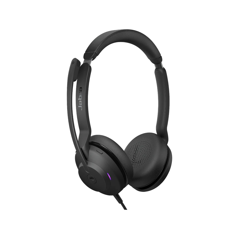 The Jabra 23189-989-879 is a wired stereo headset designed to enhance focus and communication in busy or noisy work environments. It features memory foam cushions and an angled earcup design that naturally reduce background noise, helping you stay attentive during calls and meetings. The USB-C connection ensures a stable, plug-and-play experience with computers and compatible phones, while the 4.9-foot cable offers enough length for comfortable movement.