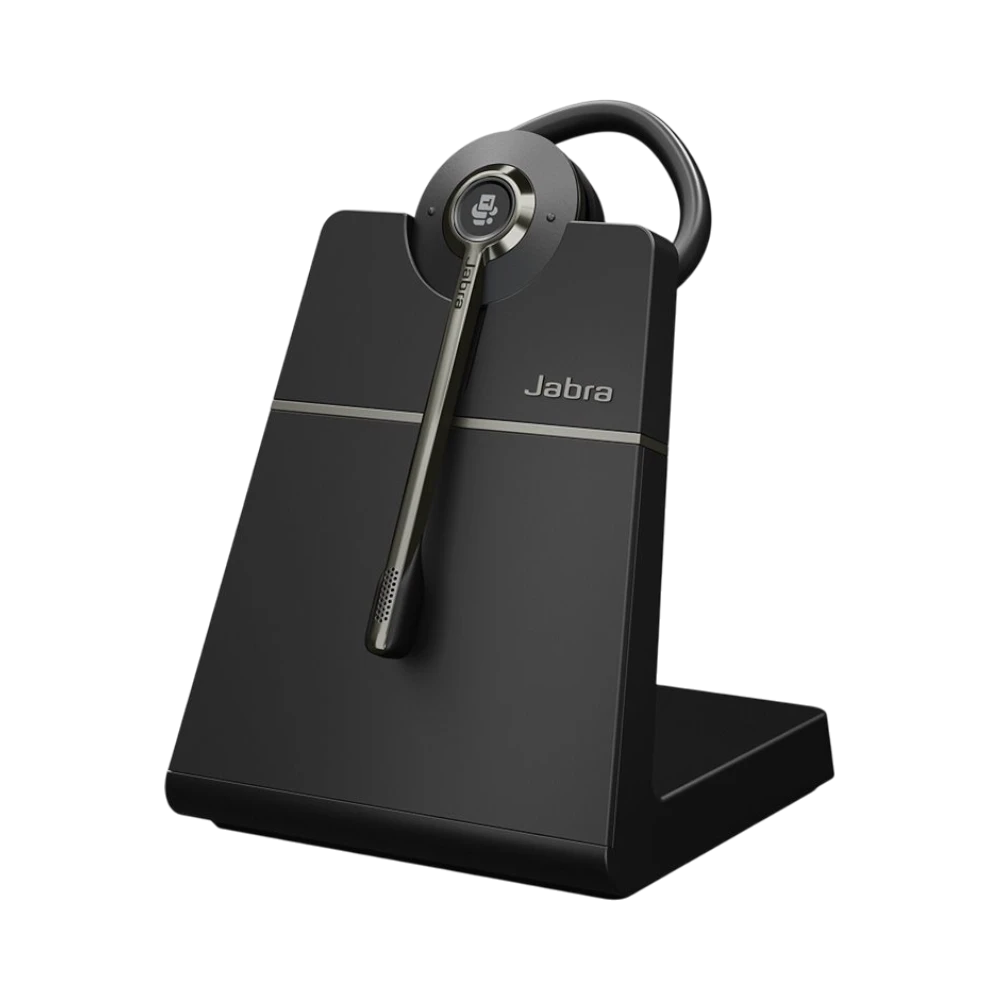 The Jabra 9655-455-125 is a convertible wireless headset designed to keep you connected and comfortable during long work sessions. It features a lightweight single ear clip and uses a DECT wireless connection that allows you to move freely up to 492 feet from your desk. With a noise-canceling microphone and compatibility with Microsoft Teams, Windows, and Cisco IP Phones, this headset supports clear communication in busy office or remote work environments.