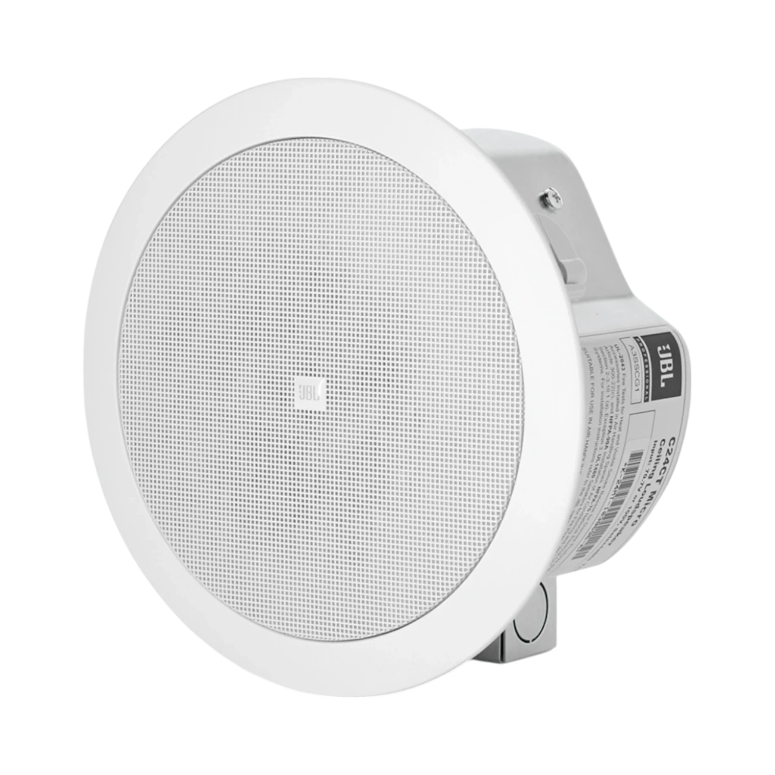 The JBL CONTROL 24CT MICRO is a pair of micro ceiling speakers designed for commercial audio distribution using 70V and 100V systems. These speakers deliver clear, full-range sound with a 4.5-inch graphite woofer and a 0.5-inch polycarbonate tweeter, providing natural and balanced audio ideal for background music and paging. Their wide 150-degree coverage ensures sound spreads evenly across rooms, while the shallow 4-inch depth allows installation in most ceiling types without hassle.