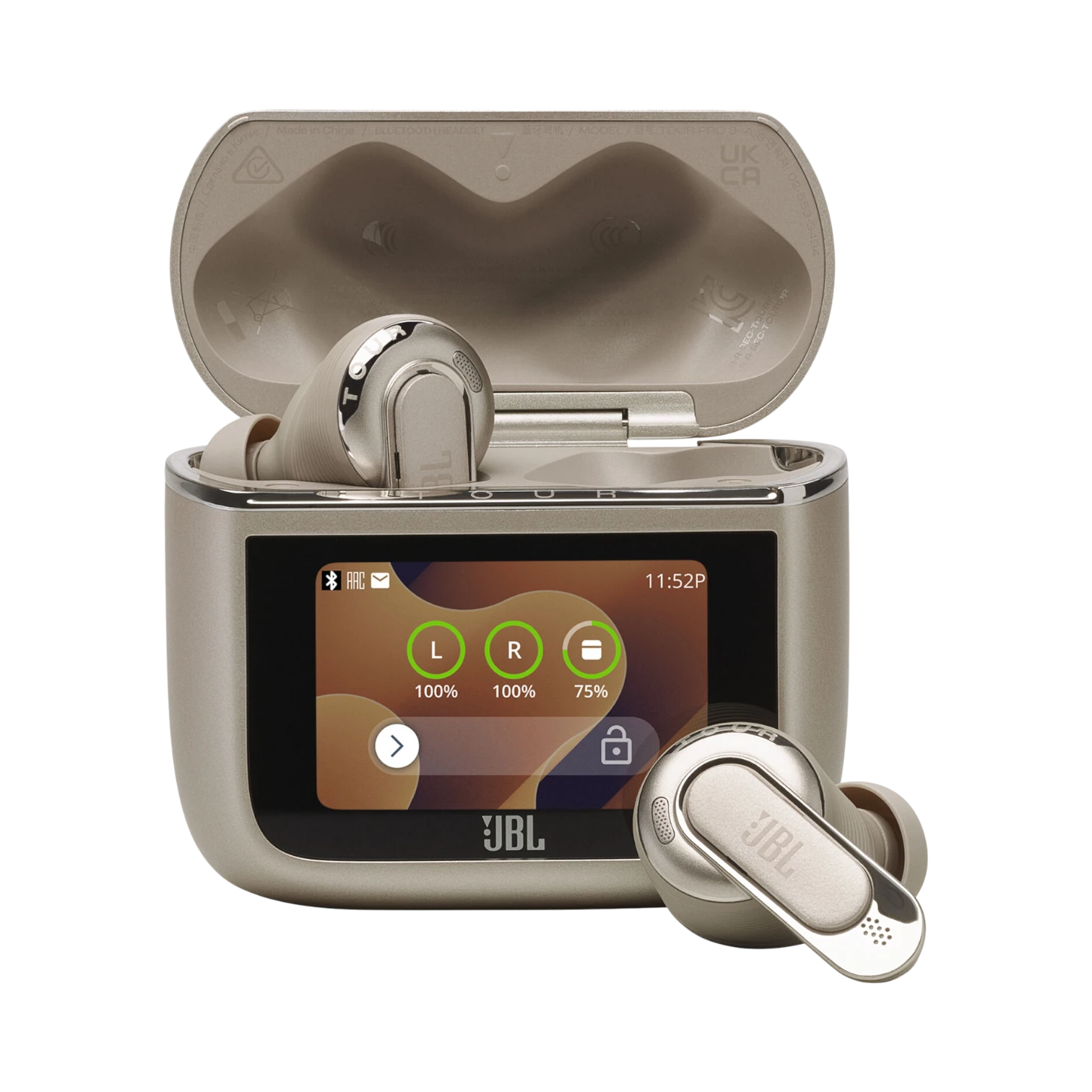The JBL JBLTOURPRO3LTTAM is a set of true wireless earbuds designed to deliver vivid sound and full listening freedom. Each earbud features two drivers that provide rich bass and clear vocals, while LDAC support ensures high-resolution audio streaming over Bluetooth. The Smart Charging Case not only powers the earbuds but also includes a display for battery monitoring and settings control, plus a dongle mode for streaming audio from aux or USB-C sources. With up to 40 hours of combined playtime and quick charging, these earbuds are built to keep up with long days and travel.