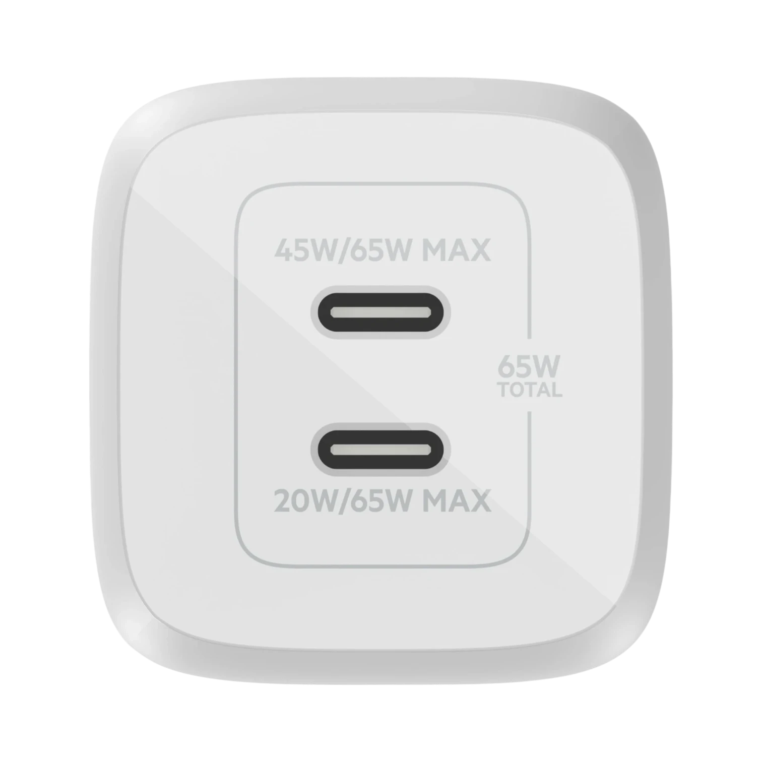 The Belkin WCH013DQ2MWH-B6 is a dual USB-C GaN wall charger designed to deliver up to 65 watts of total power, making it a versatile charging solution for a wide range of devices. It supports Programmable Power Supply (PPS) on both USB-C ports, allowing each connected device to receive the optimal wattage for faster and safer charging. This charger is compact and efficient, ideal for users who need reliable power for laptops, tablets, smartphones, and gaming devices in various settings such as home offices, classrooms, or while traveling.