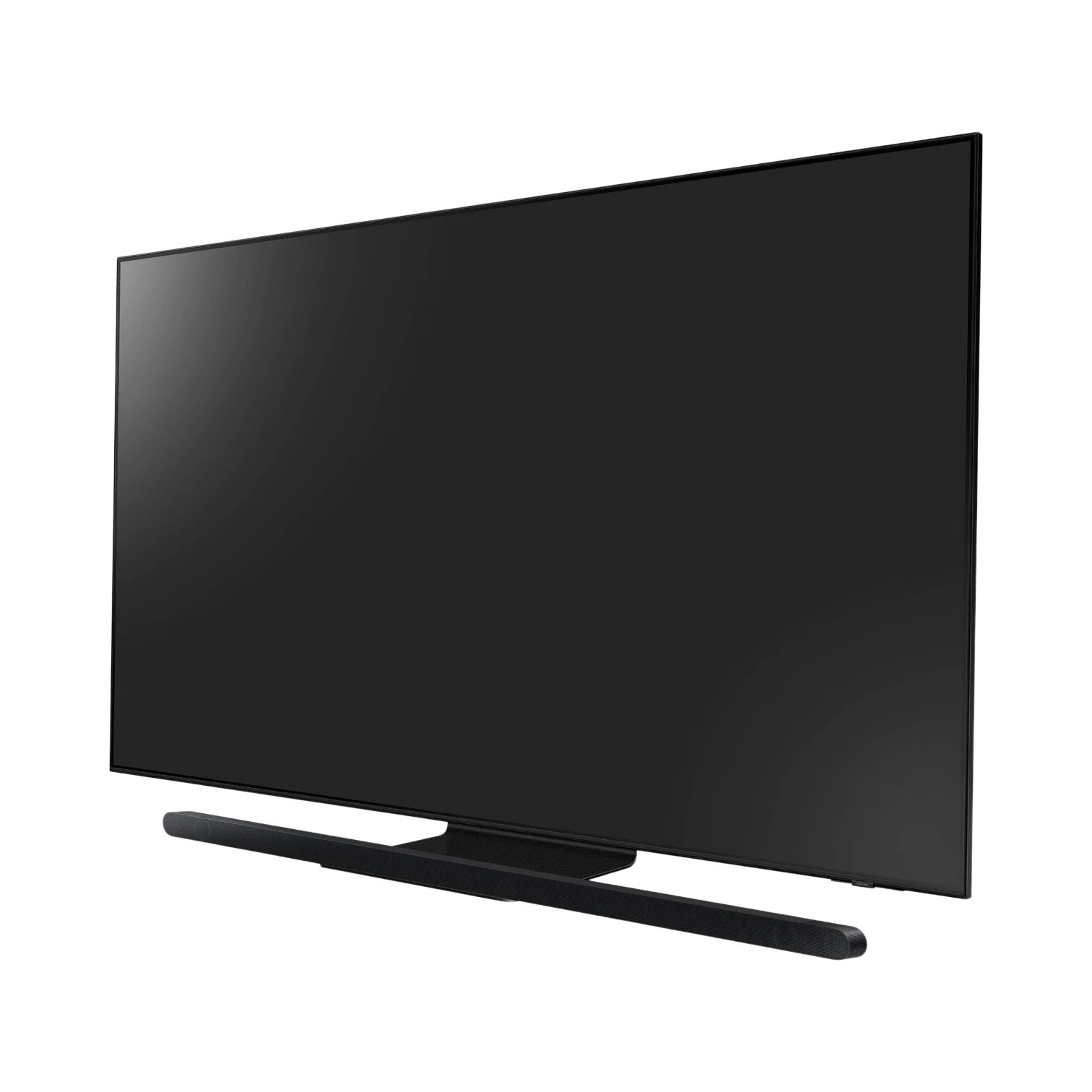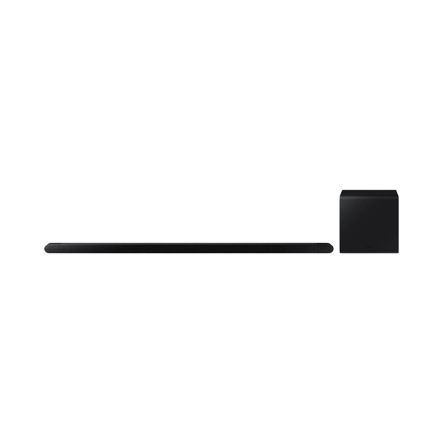The soundbar connects to your TV using a single HDMI eARC cable, simplifying setup and reducing cable clutter. Wireless subwoofer connectivity allows flexible placement for optimal bass response. Bluetooth and AirPlay 2 support make it easy to stream music from a wide range of devices, including Apple products and smartphones. When paired with compatible Samsung TVs, Q Symphony technology enhances the overall audio experience by combining TV speakers with the soundbar output.